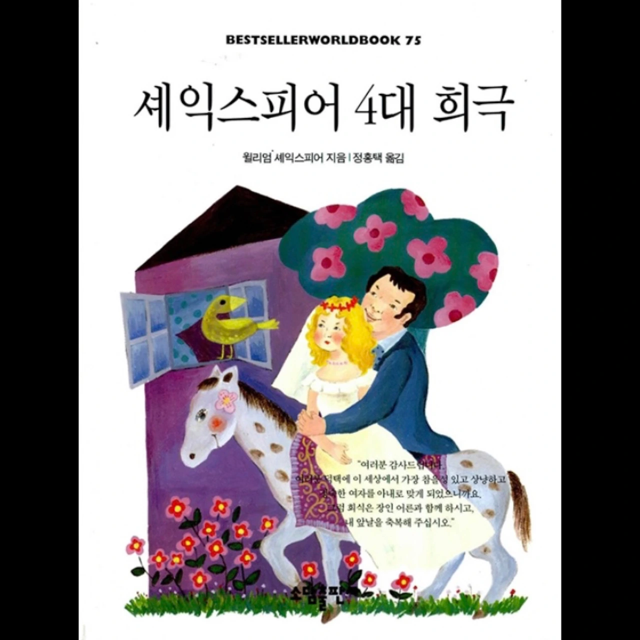근데 셰익스피어는 작품이 너무 많기도 하고 좀 통일성 있게 사고 싶기도 해서 고민이 됐었다. 그러다 소담 출판사의 세계 베스트셀러 시리즈가 눈에 들어왔다. "셰익스피어 4대 비극," "셰익스피어 4대 희극"이 두껍지 않은 판본으로 가격도 저렴하게 있었다.