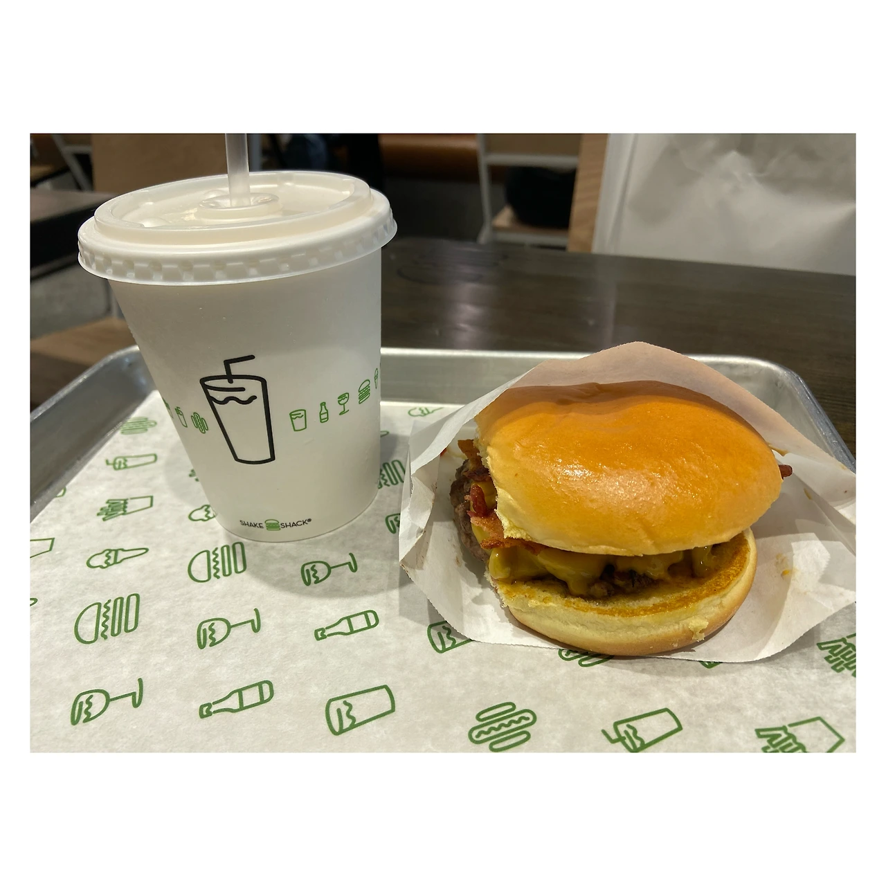 내 도심 속 휴가가 코로나 확진세 증가로 1박 2일만에 조기 종료 될 것 같은 느낌적 느낌이다. 아쉬워서 쉐이크쉑에서 내가 제일 좋아하는 스모크 쉑 버거와 쏠티드 카라멜 쉬이크를 먹었다.