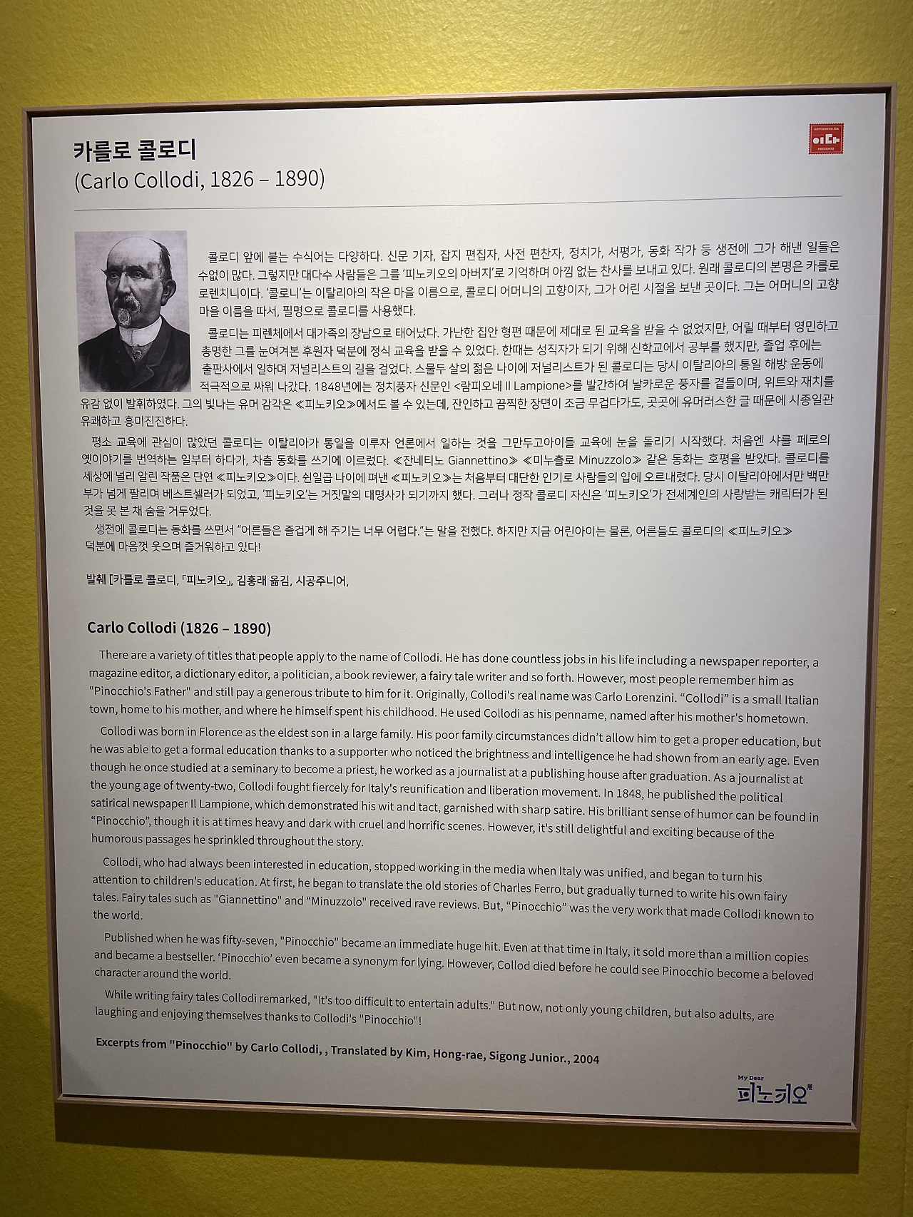 성경 다음 가장 많이 팔린 책은 "돈키호테" 라고 알고 있다. 그런데 "피노키오"는 성경 다음 많이 번역된 작품이라 한다. 돈키호테는 근대 소설의 효시와 같은 작품이라고 한다지만, 피노키오는 어떤 의미를 가지는걸까.