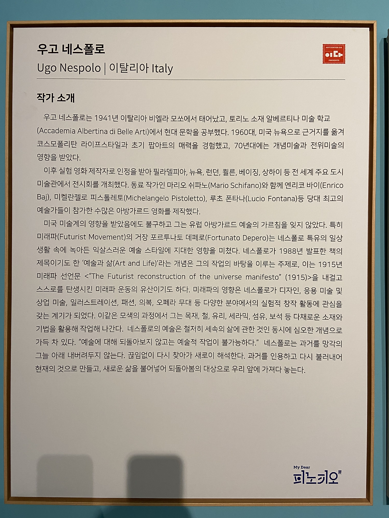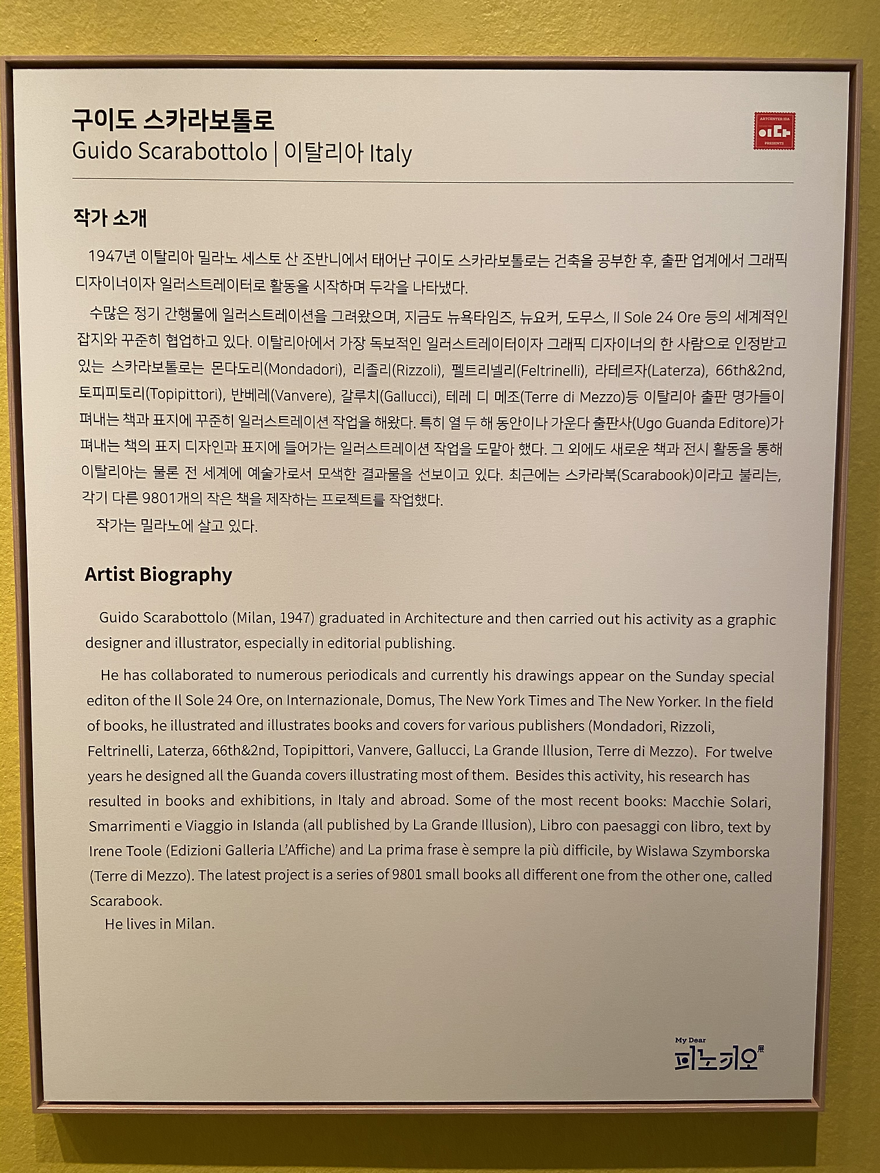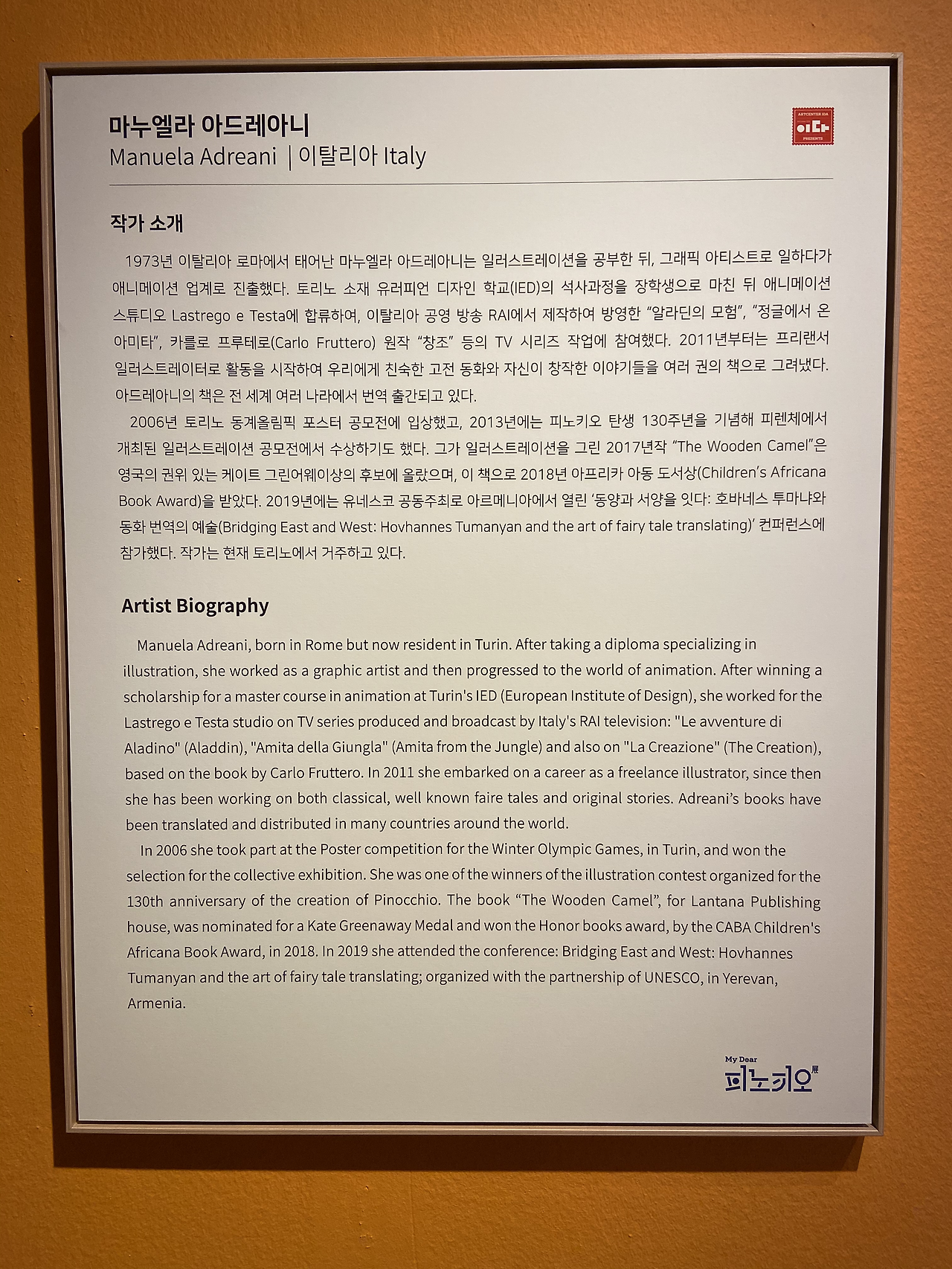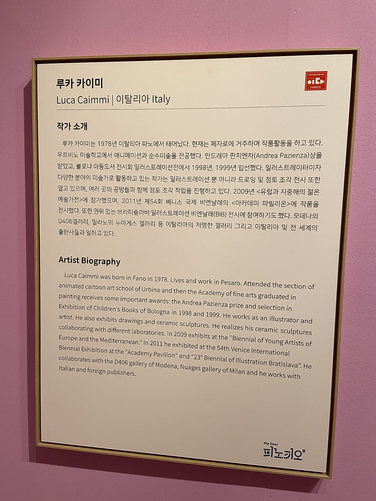 이 외에도 피노키오 에코백과 뱃지, 나무 인형 등 너무 사고 싶은게 많아 자제심이 필요했다. 마누엘라 아드리아니 작품들이 엽서로 없어서 아쉬웠고, 나무 피노키오 인형이 좀 다양하게 나오면 좋을 것 같다는 생각이 들었다.