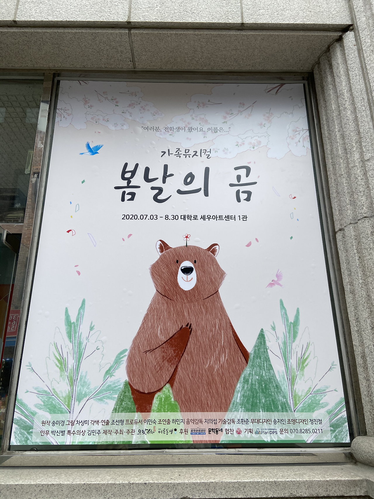 혜화역에서 가족 뮤지컬인 "봄날의 곰" 프리뷰 공연을 보고 왔다!