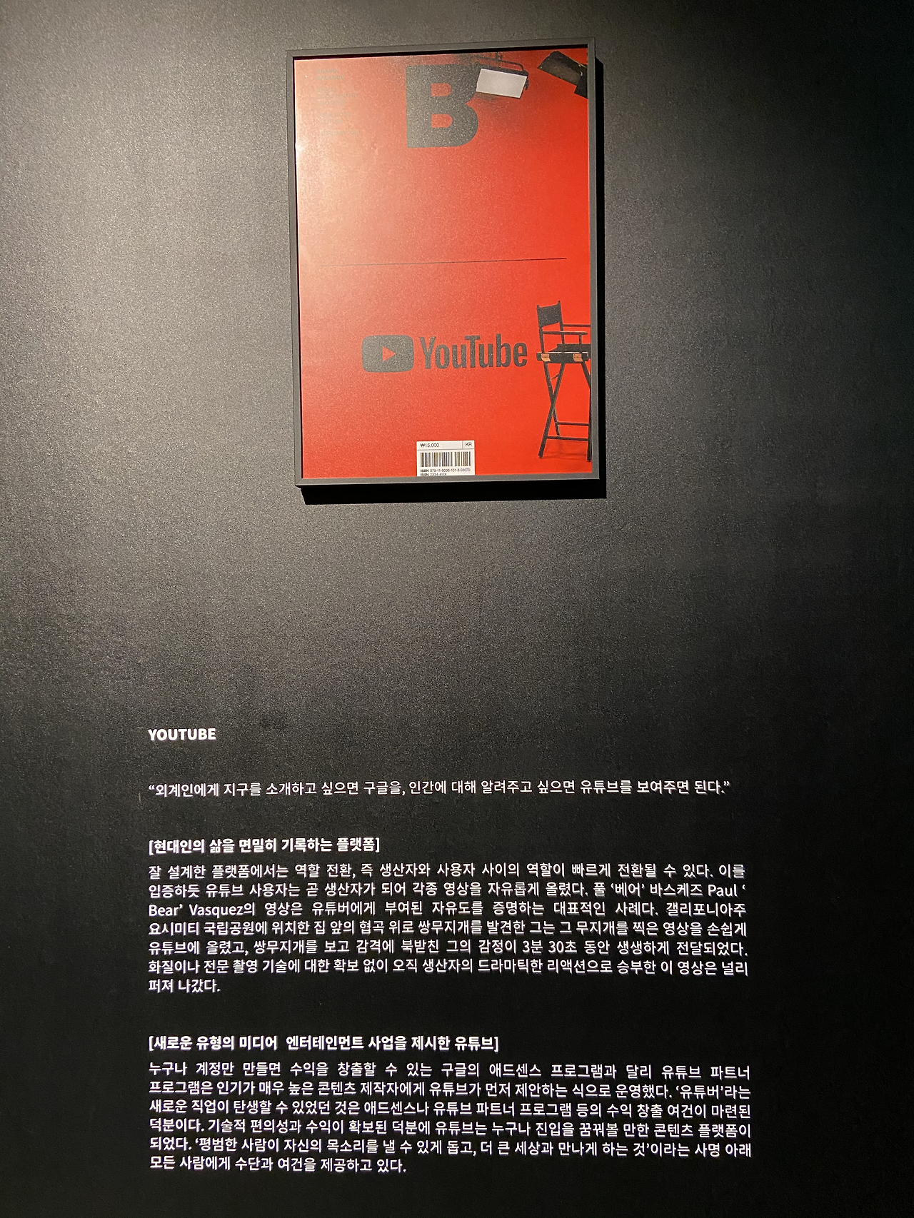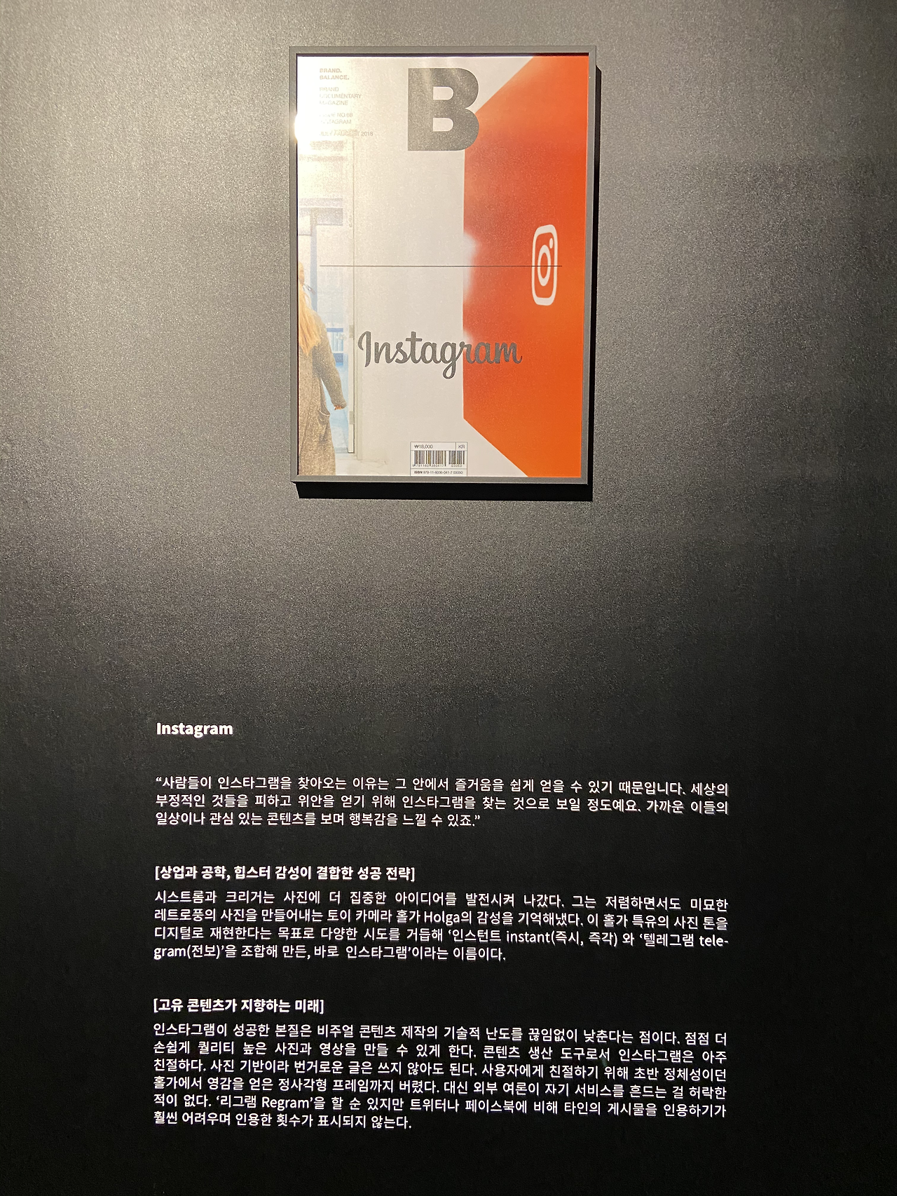 전시되어 있는 브랜드 스토리 중에서는 역시 블루보틀, 팬톤, 인스타그램, 유투브, 샤넬에 조금 더 관심이 가는 편이었다. 전시는 사실 소규모 느낌이었고, 데어바타테가 고구마라는 뜻이라며 입장 시 고구마칩을 주었다~
