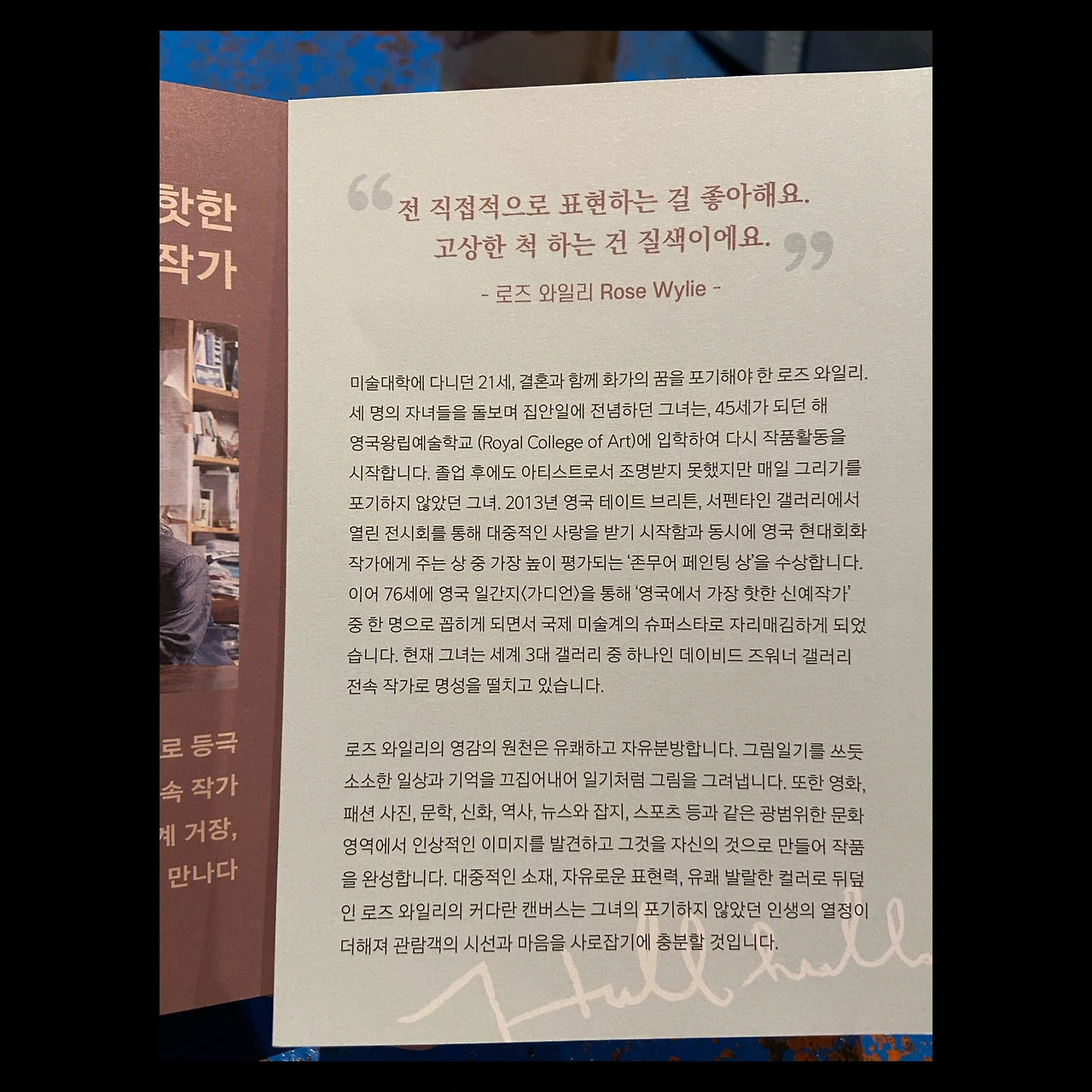 지난 번에 예술의 전당에서 데이비드 자민 전시 볼 때 로즈 와일리 전시도 같이 볼까 하다가 말았다. 이유는 요즘 괜찮은 전시 많이 하지도 않아서 아껴놨다 보려 했기 때문이다!