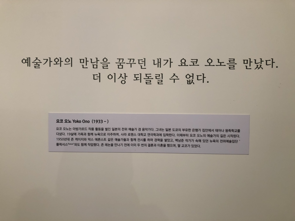 개인적으로 아쉬웠던 것은 오노 요코의 단독 작품들이 없었다는 것이랄까. 오노 요코 전 또 했으면 좋겠는 마음..