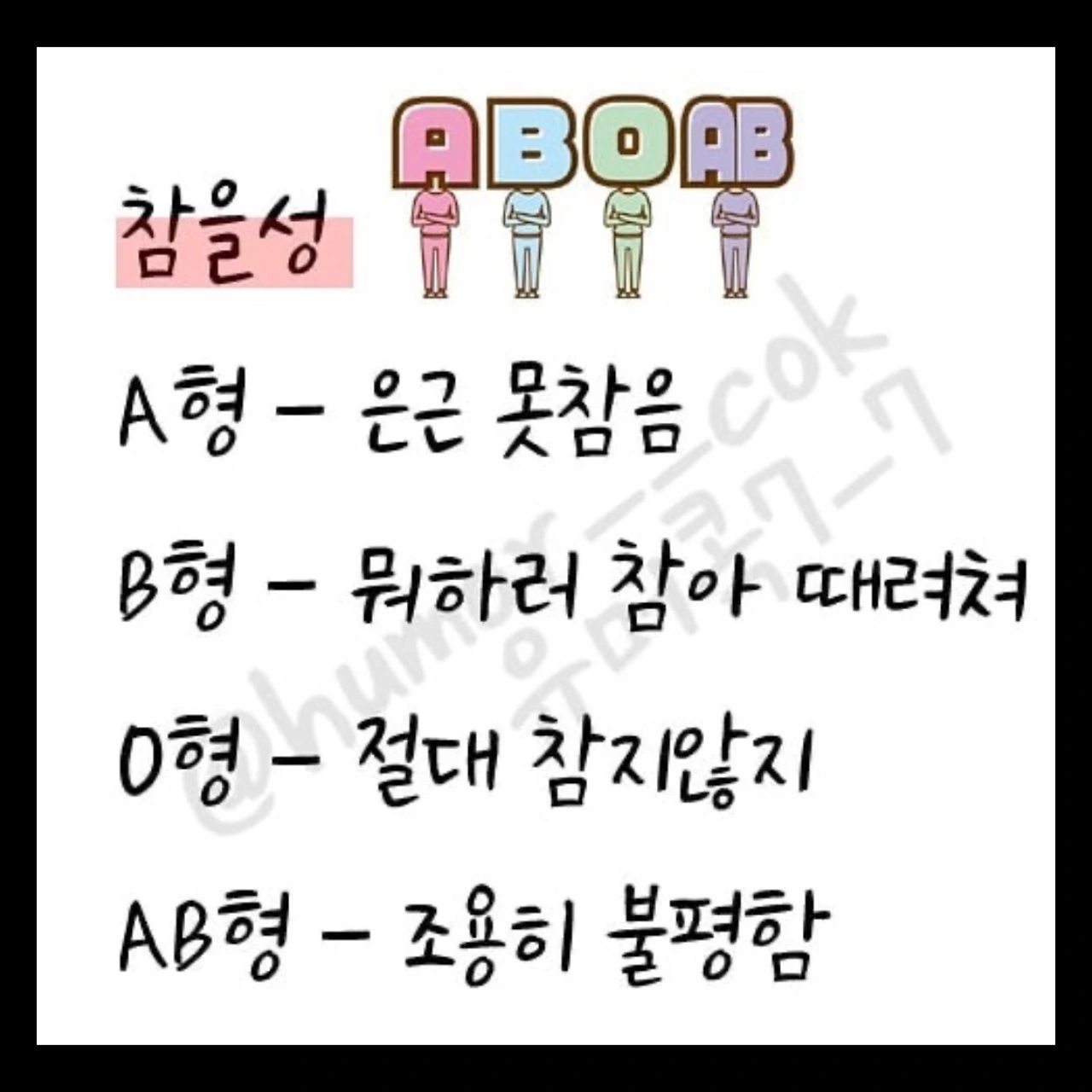 A형은 너무 의식적으로 충성한 나머지 자연스럽게 눈이 다른데로 돌아가는거 같기도 하고, O형은 현실 적응이 최고 목표이므로 잘 모르면 안그래보이면서도 진짜 경쟁 장난 아님.