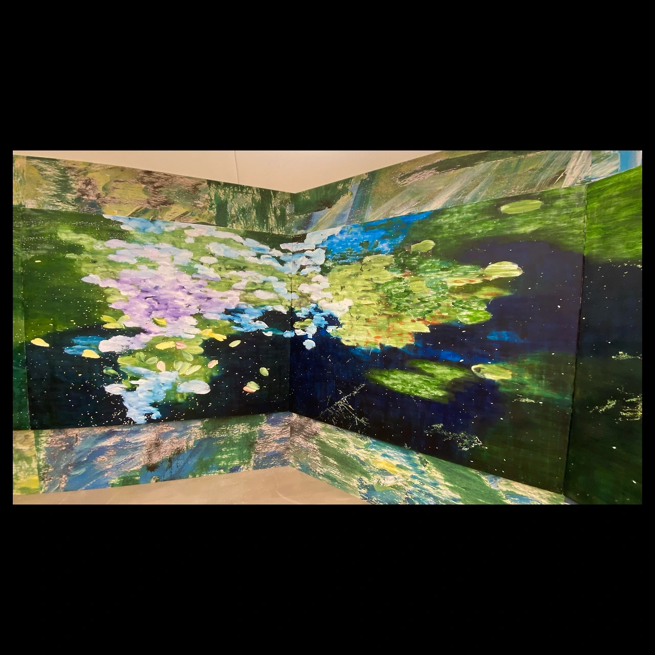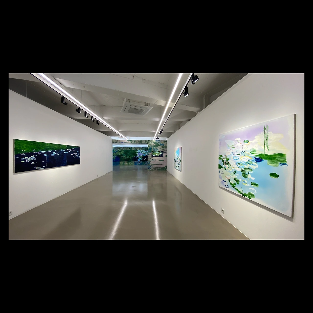 모네의 수련 시리즈를 떠올리게 하지만 동시에 조금 다른 느낌도 있고. 모네는 자신의 정원을 그린 것이지만 빈우혁의 경우 실제 풍경이라기보다는 추상 풍경을 지향한다.