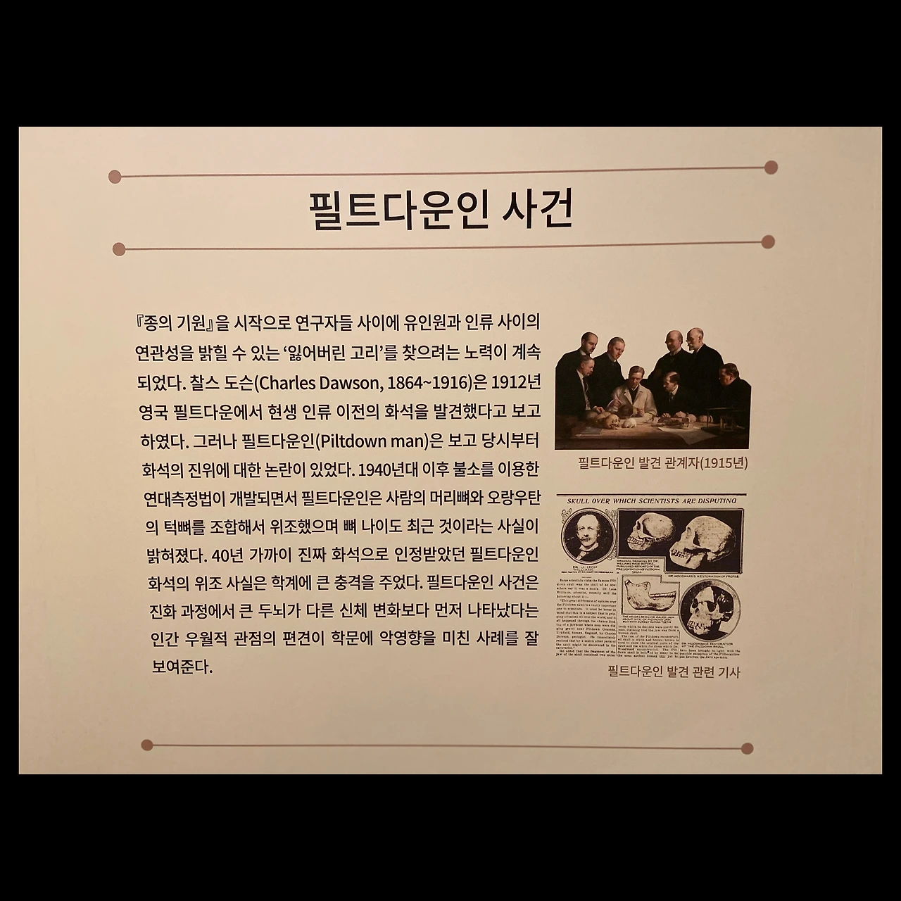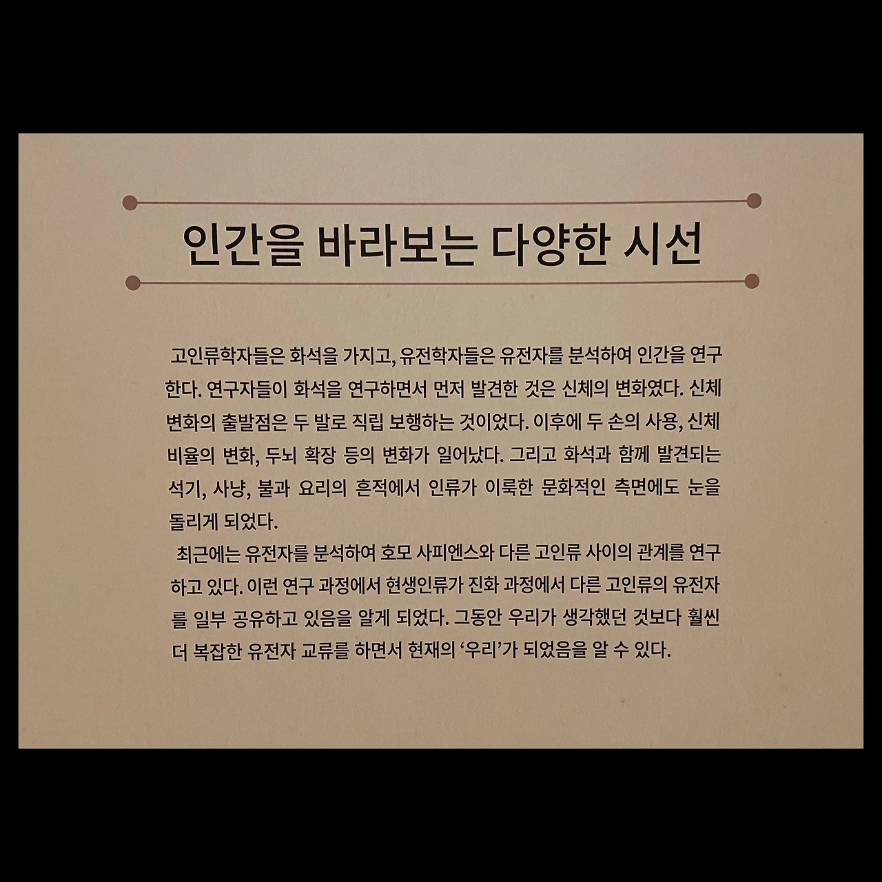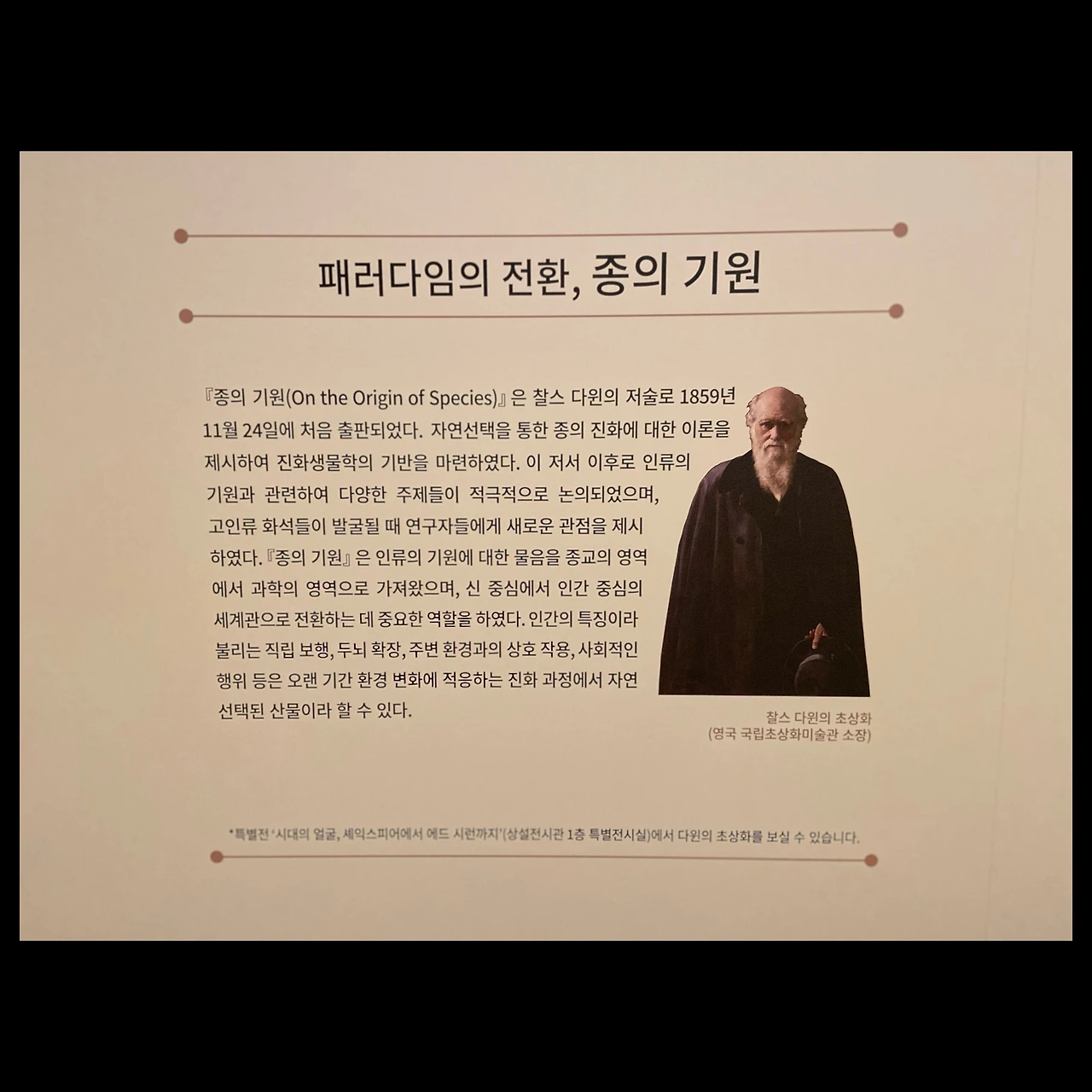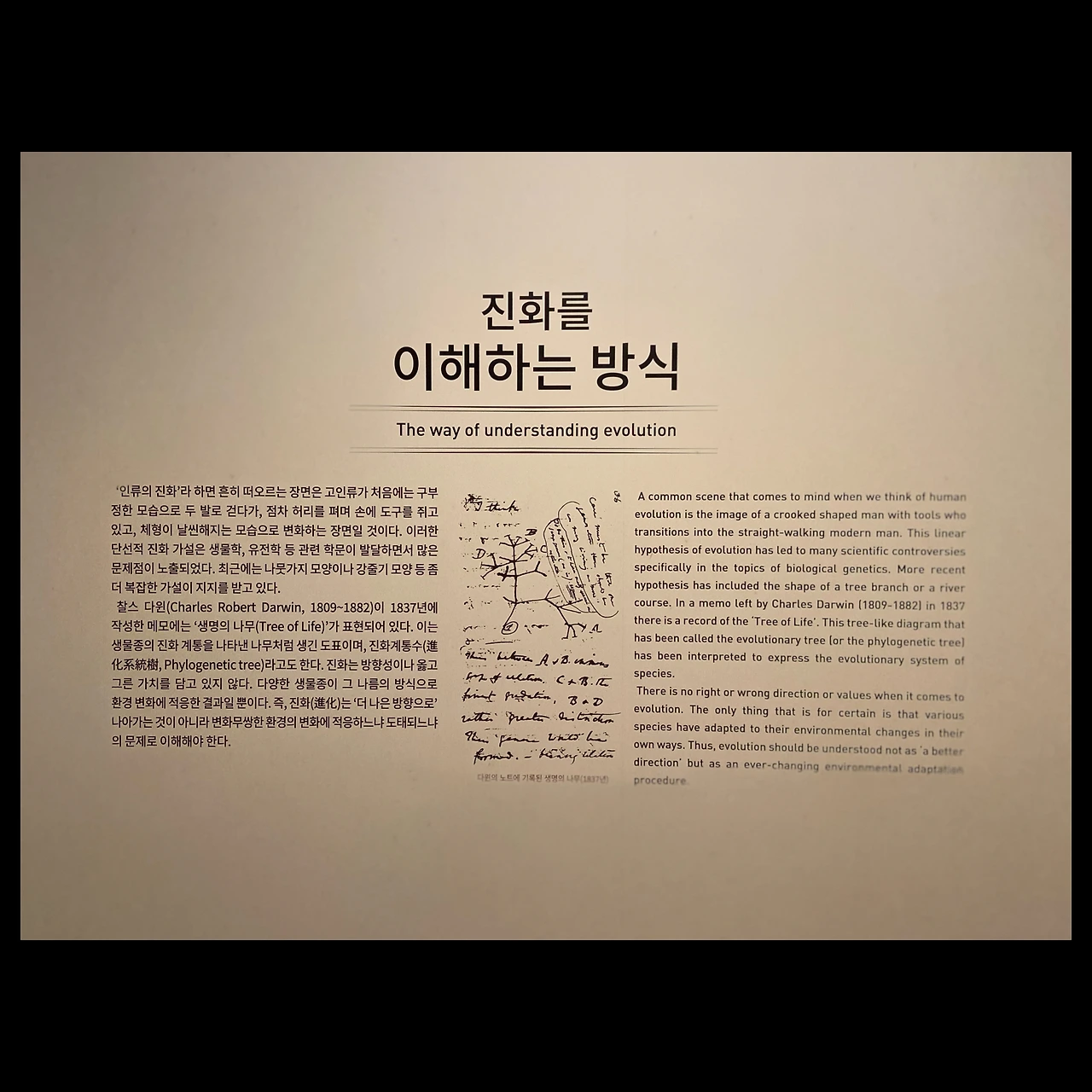 사실 진화론에 대해서는 소위 지식인, 전문가 그룹들에서도 굉장히 오해도 많고 무지도 많고 아직도 논쟁의 여지가 많은 부분이 있다. 나 역시 세부 전공은 이 쪽이 아니라 더 공부할 부분이 있어서 전시가 도움이 되었던 것 같다.