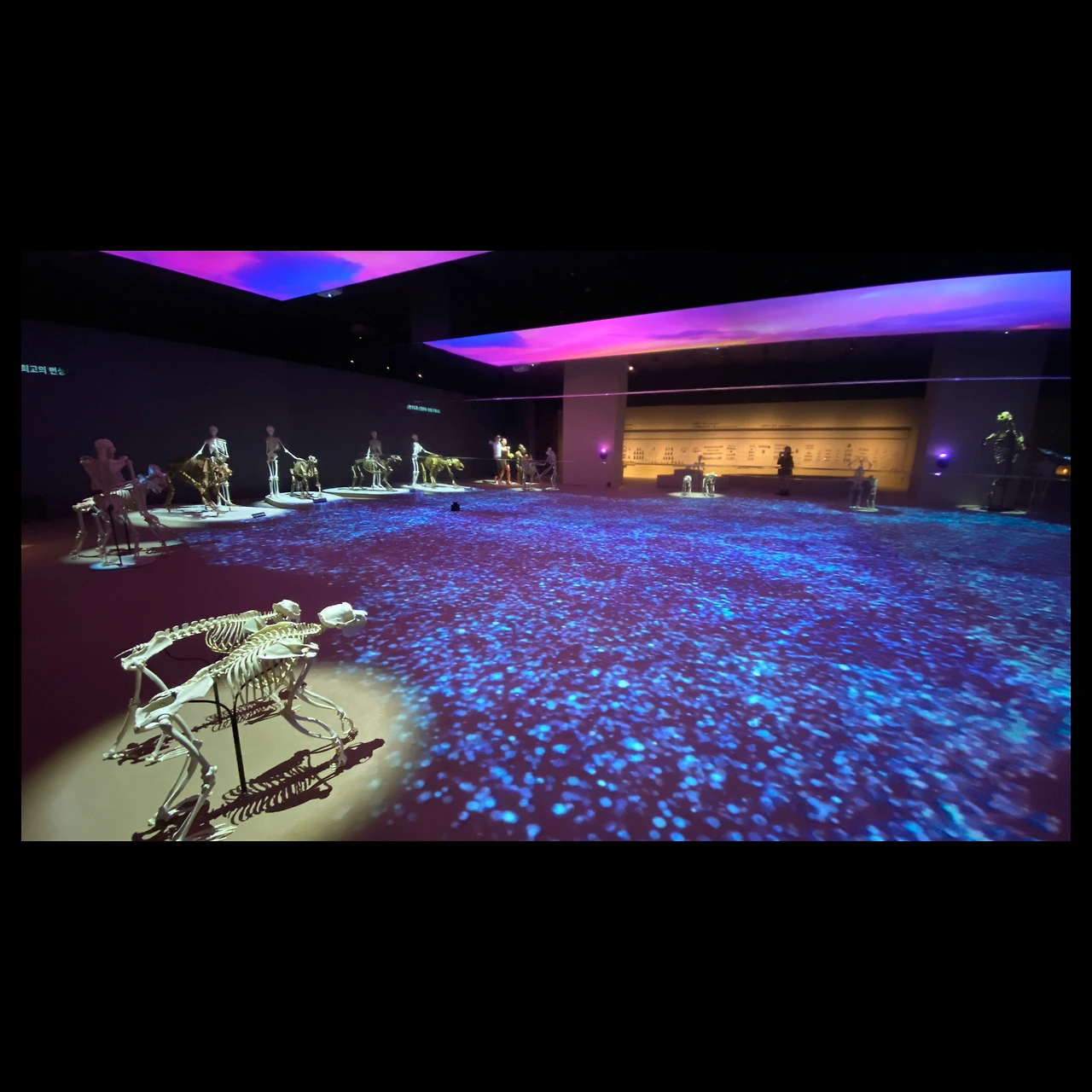 특히 전시의 마지막 순서에 "A Journey Together" 라는 디지털 체험 아트 작품이 인상적이었다. 지구를 거쳐간 혹은 현생하고 있는 존재들이 디지털 호수를 둘러싸고 있고, 관람자가 호수에 발을 딛으면 파장이 생기고 주변 존재들과의 연결선이 생기는 그런 미디어 아트였다.