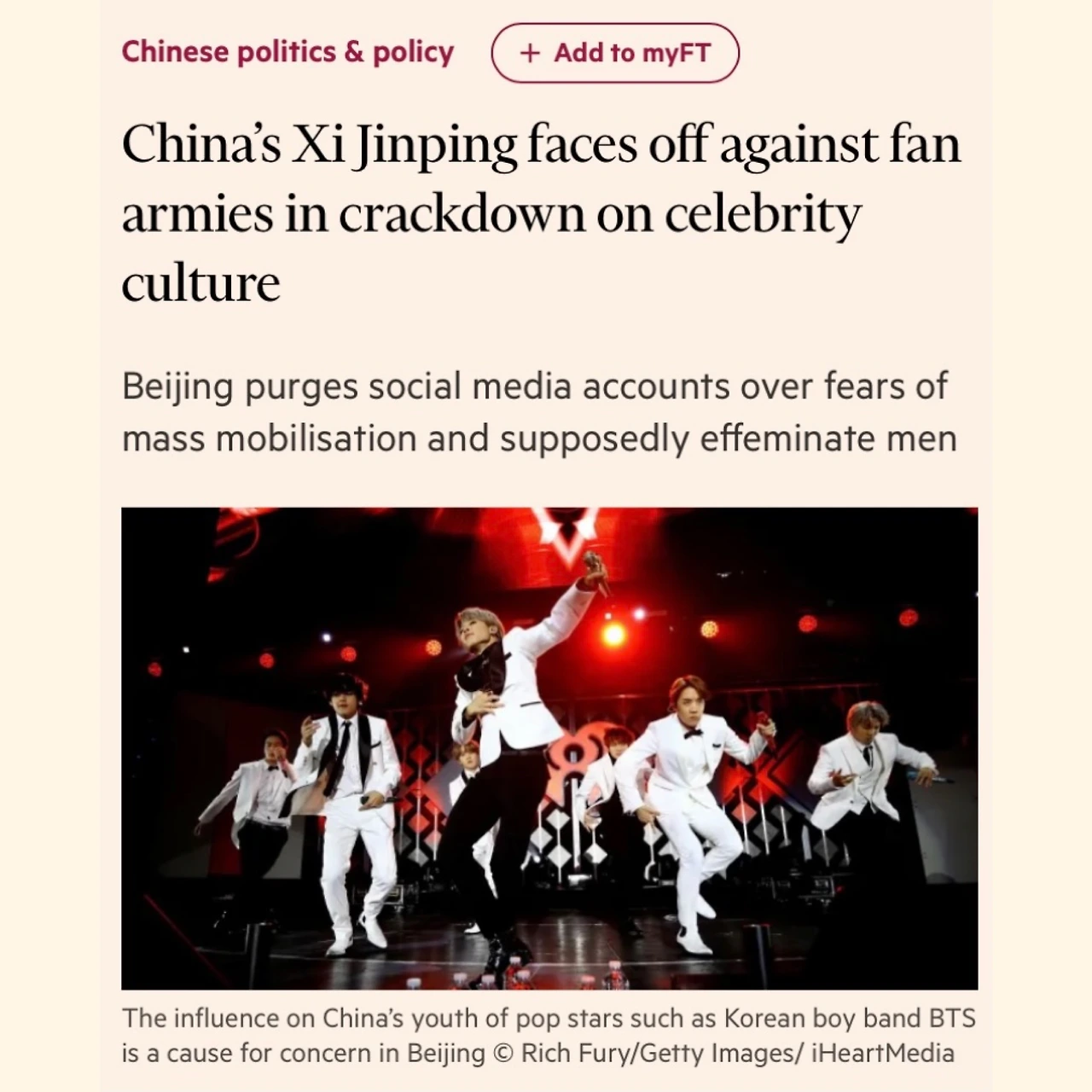 파이낸셜 타임즈와 인터뷰한 기사가 떴네요. 전 엑소의 멤버 크리스가 중국의 Me Too 운동에 불을 지핀 한편, 중국 정부는 "남자답지 않은" 너무 예쁜 케이팝 남자 아티스트들 봉쇄 작전에 들어갔네요;;