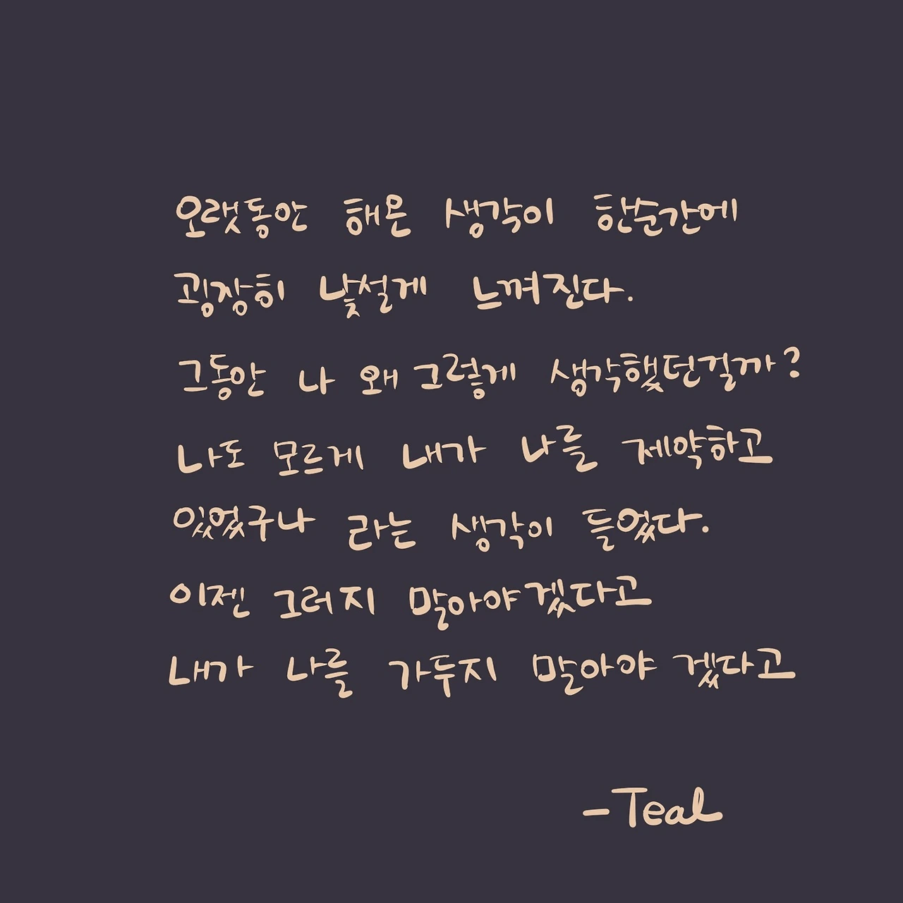 대체 왜 그렇게 생각해 왔던걸까? 그 오랜 시간동안 말이다. 우리는 생각보다 말도 안되는 이상한 생각을 몇개쯤은 가지고 살아가고 있는지도 모른다. 그 생각들이 우리를 살리는게 아니라 죽이는데도 말이다. 내 안에 또 그런 생각들이 없는지 찬찬히 둘러보아야겠다고 생각한 그런 밤