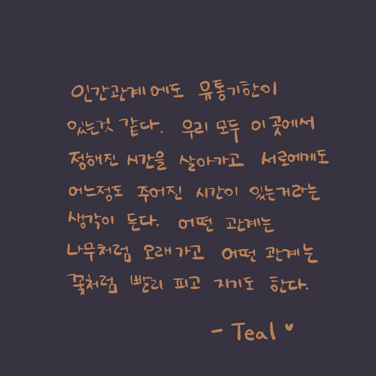 유통기한이 지나버린 관계들이 보일 때가 있다. 어떤 때는 그냥 자연스럽게 상황과 시간의 흐름에 따라, 어떤 때는 스트레스와 상처를 남기며 그렇게 정리되어 간다.