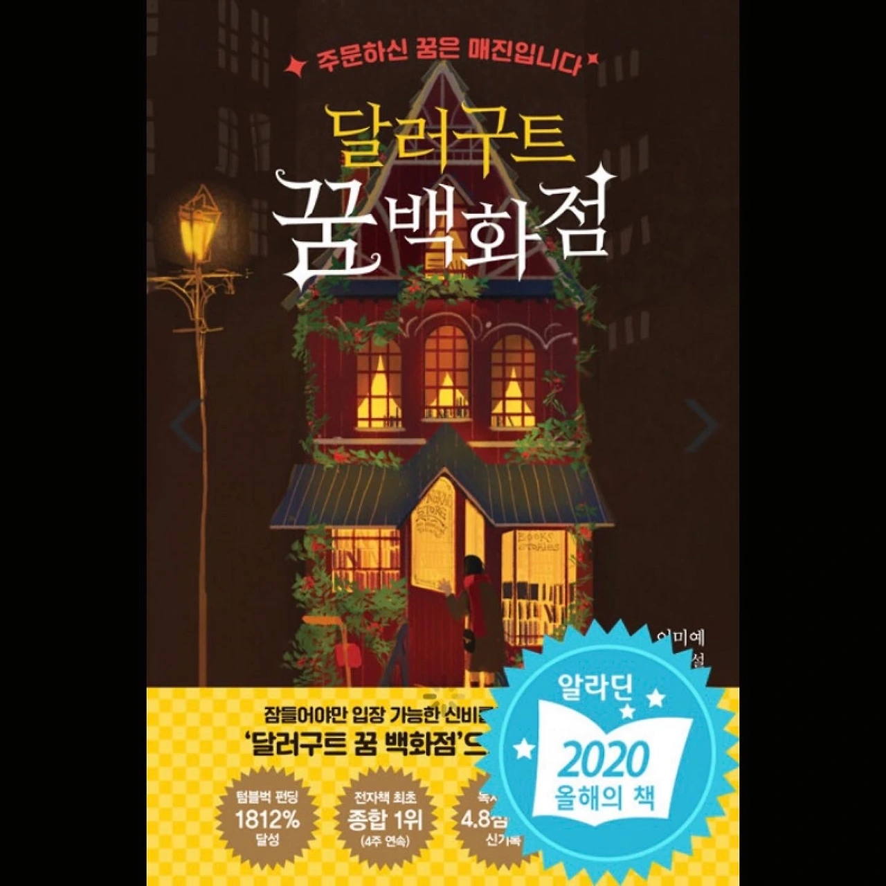 연말이 되니 올해의 책 리스트가 여기저기 눈에 띈다. 물론 지금 내가 북클럽을 하고 있어서 더 관심 있게 보이는 것도 있을 것이다. 그런데 여러 리스트를 보며 느끼는게 정말 올해는 "달러구트 꿈 백화점"의 해였구나 라는 생각이다. 알라딘 올해의 책 2021 리스트를 찾아봤더니 역시 달러구트가 1위를 차지했다. 올해 북클럽은 약간 자유 형식으로 각자 읽고 싶은 책을 많이 읽었는데 그 중 달러구트도 속해 있었다. 물론 이런 류의 판타지를 좋아하는 나의 추천이었다. "한국의 해리포터" 라는 홍보 문구에 해덕은 또 심히 끌리기도 했고 말이다.