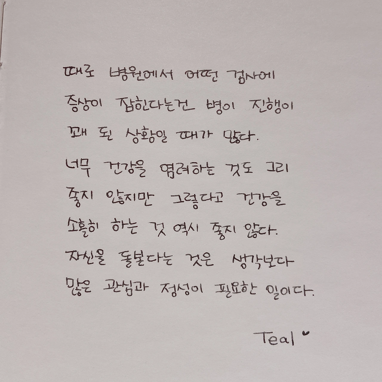 #브런치작가 #손글씨 #에세이 #글쓰기 #일기 #심리 #건강 #검사 #자신을돌본다는것
