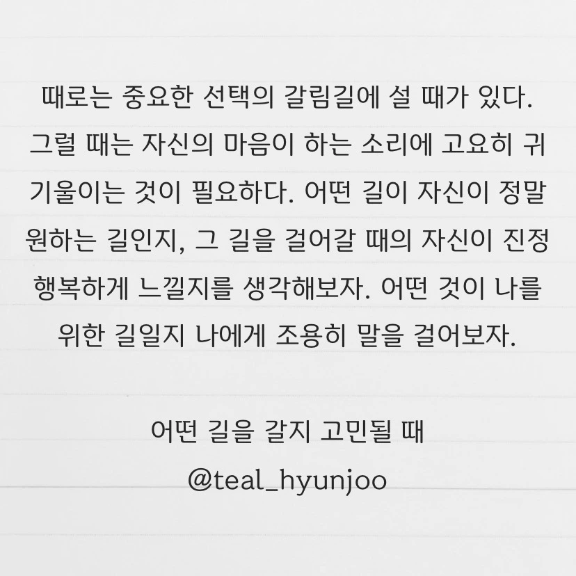 자기 내면의 목소리에 귀기울여 주세요..