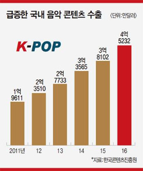 음악 콘텐츠 수출액은 꾸준히 증가하고 있다