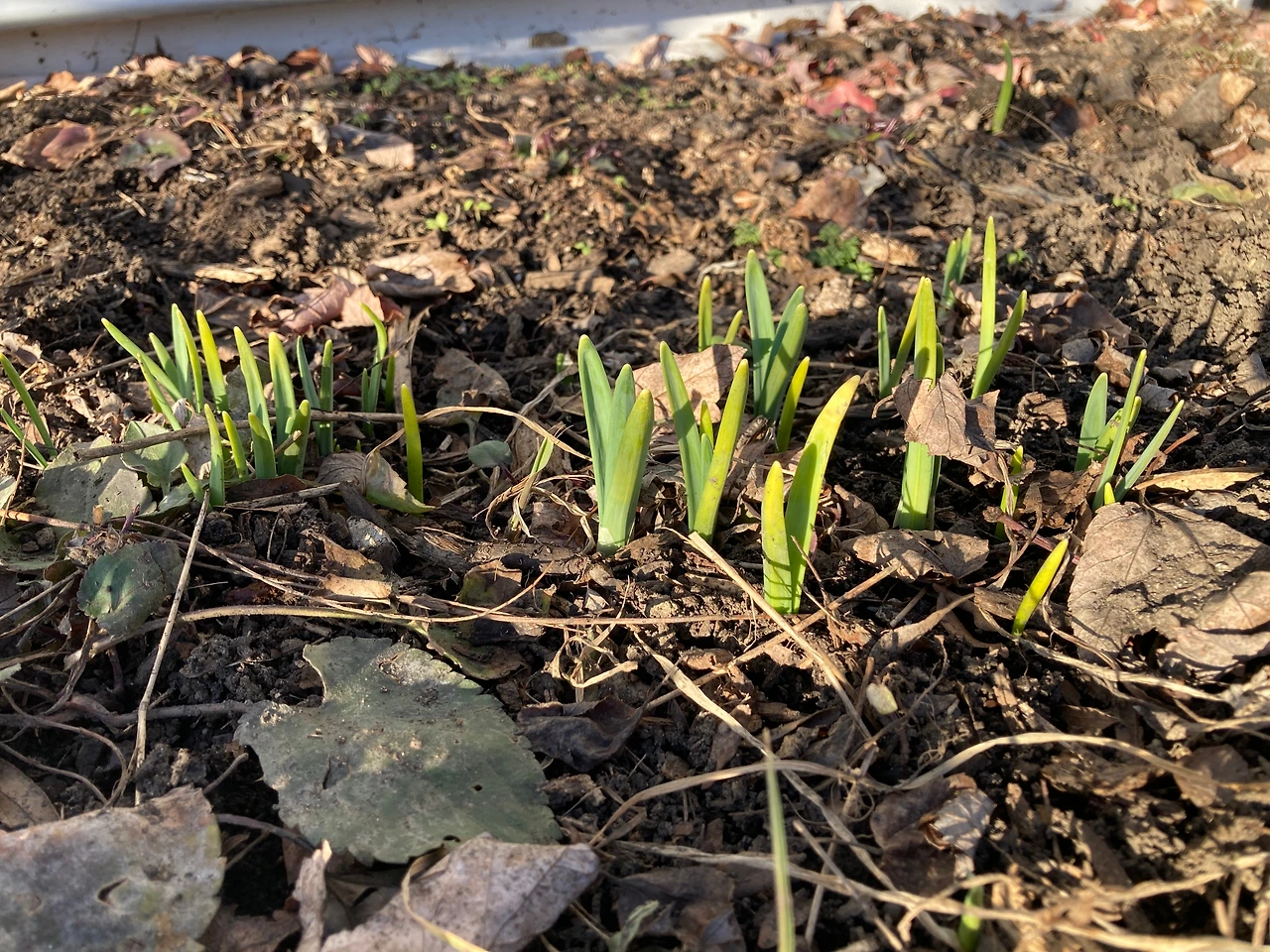 한국에 있는 지인들에게 물어보면 여전히 코로나 종식은 요원해 보인다고 한다. 나 역시 우리 집 앞에 눈이 가득해 있을 때는 봄이 정말 멀게만 느껴졌었다. 하지만 눈이 걷히고 나니 바로 아래에 꽤 많은 초록색 새싹들이 이미 고개를 들고 있었다. 내 눈에는 안보였지만 봄은 어느새 내게 와 있었던 것이다. 화단에 있는 푸른 싹처럼, 한국의 코로나 종식도 시나브로 왔으면 좋겠다.