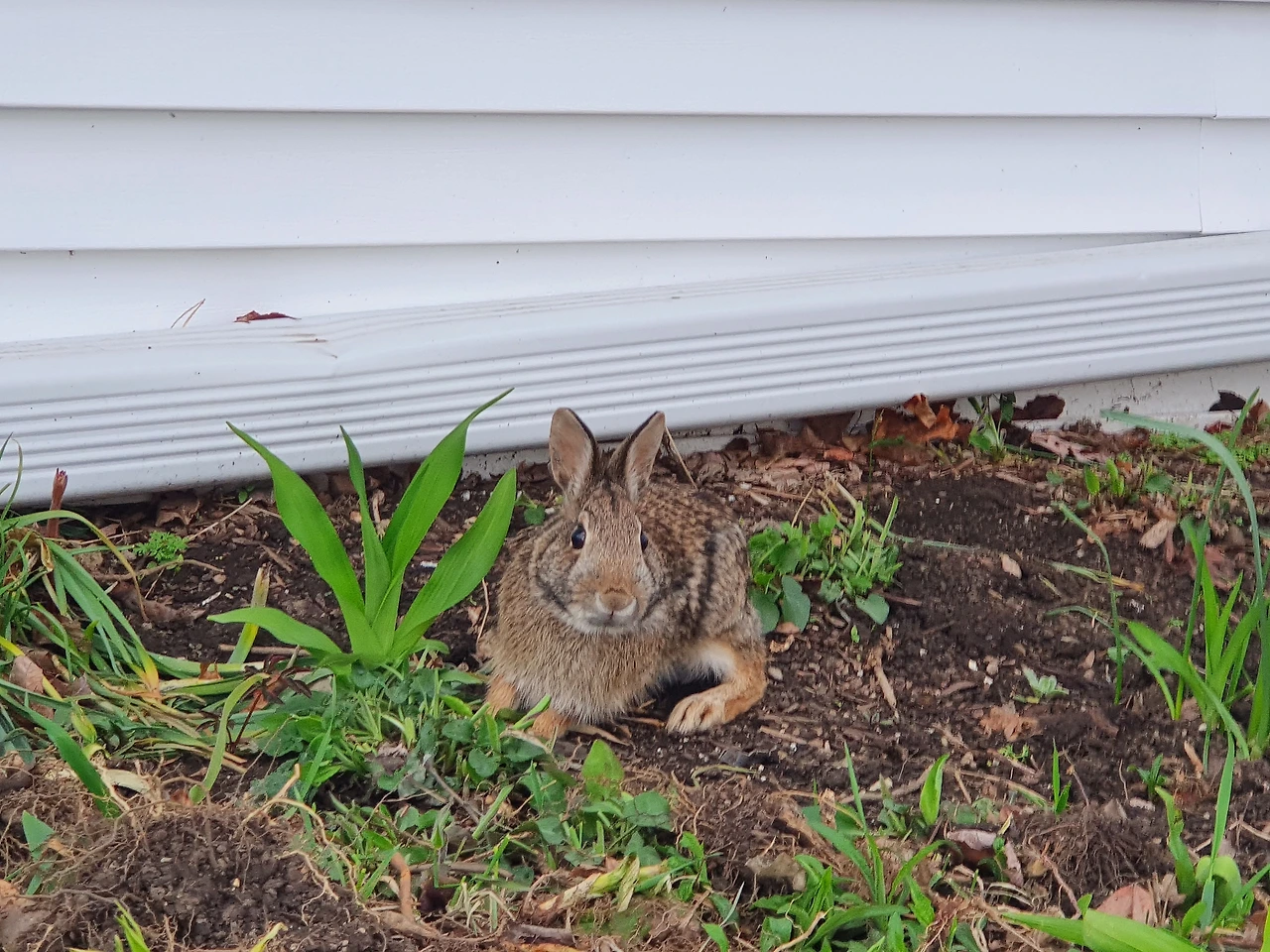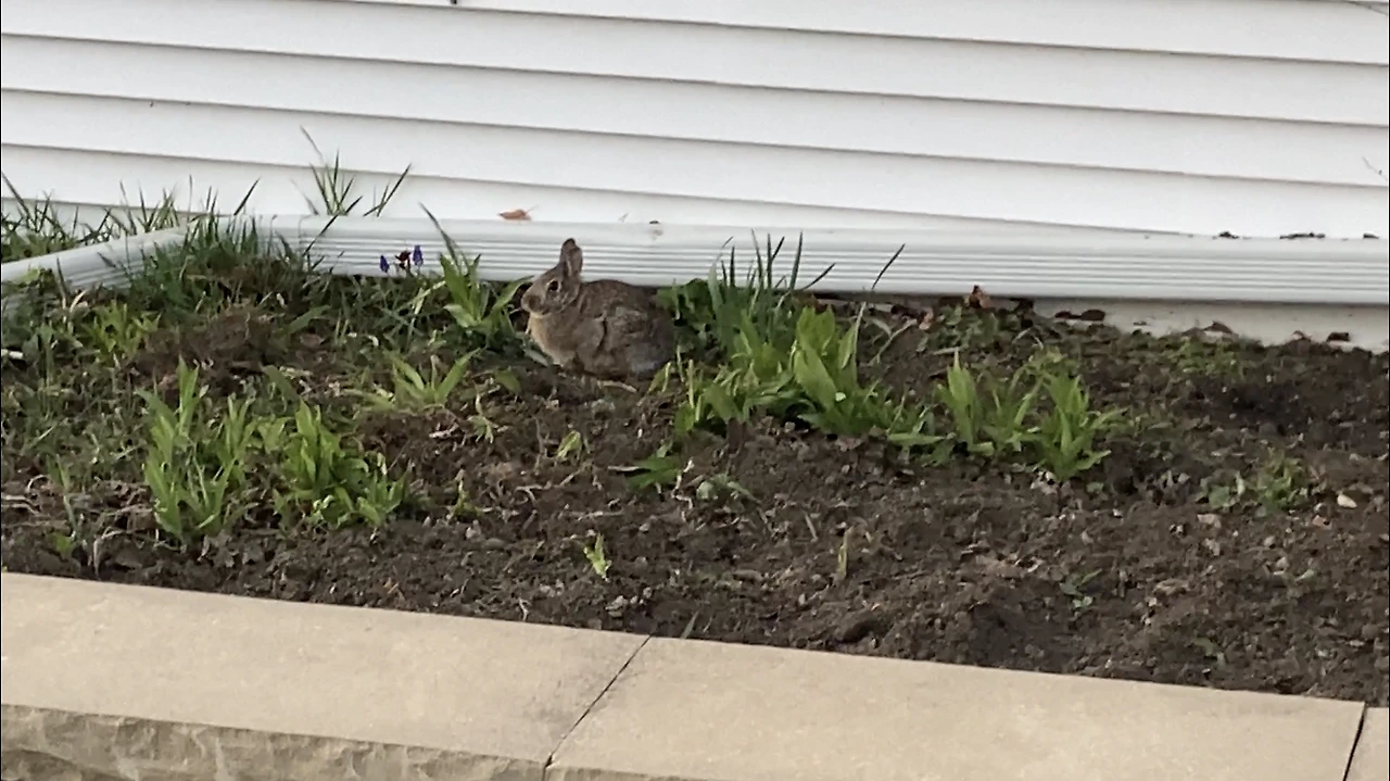하지만 그 이후 또 며칠 눈에 띄지 않아서 사나 안사나 반신반의하기는 했다. 그러다 지난주 화요일 그 토끼가 다시 집 앞 잔디밭에 나와 보란듯이 야생화를 뜯어먹고 있었다. 내가 다가가는데도 코만 벌름벌름할 뿐 미동도 없었다. 여전히 이 곳을 자기 집으로 생각하는 것 같았다.
