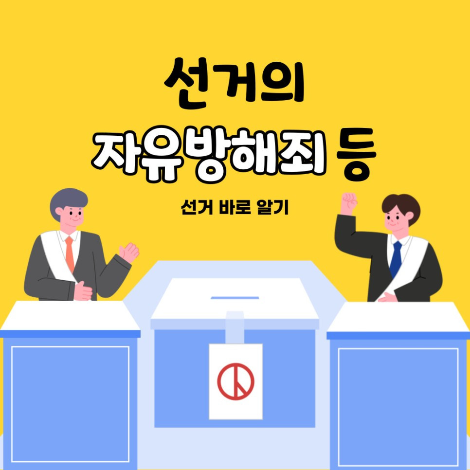"선거에 관하여" 선거인, 후보자, 후보자가 되고자 하는 자, 선거사무장 등 선거관계자를 폭행, 협박 또는 유인하거나 불법으로 체포, 감금하거나 선거운동용 물품을 탈취한 자, 집회, 연설 또는 교통을 방해하거나 위계, 사술 기타 부정한 방법으로 선거의 자유를 방해한 자, 업무ㆍ고용 기타의 관계로 인하여 자기의 보호ㆍ지휘ㆍ감독하에 있는 자에게 특정 정당이나 후보자를 지지ㆍ추천하거나 반대하도록 강요한 자 등은 선거의 자유방해죄에 해당되어 공직선거법에 따라 처벌된다. 이는 국민의 자유로운 의사와 민주절차에 의하여 공정하게 치러져야 하는 선거를 방해하는 행위에 대하여 엄벌하기 위한 규정이다.