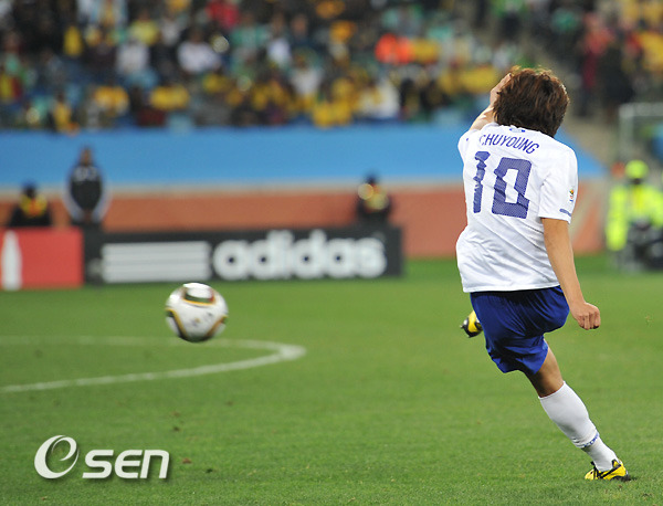 전반은 1:1로 팽팽하게 유지되었다. 그리고 후반 3분 만에 박주영이 페널티 에어리어 좌측 바깥에서 파울을 얻어 낸다. 박주영은 자신이 얻은 프리킥을 침착하게 오른발 인프런트로 감아차 역전을 만들어 낸다. 16강을 확정짓는(것만 같던) 골이었다.
