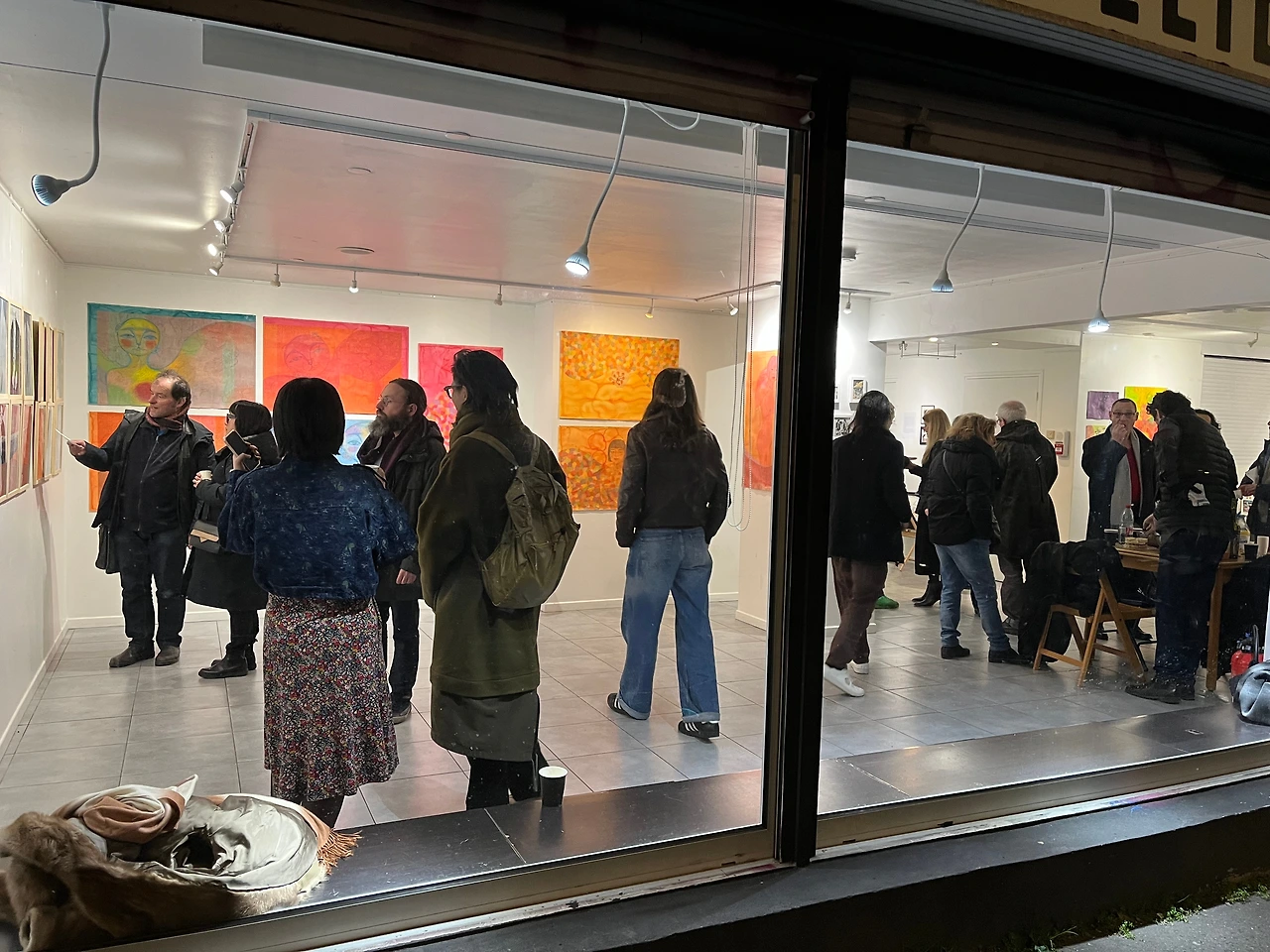 그렇게 일주일을 보내고 드디어 설치하는 날. 그간 온라인으로 소통하던 놀벤과 발레리를 일 년 만에 다시 만나 수다를 떨면서 하루 종일 걸려 작품을 설치했습니다. 각자 작업해 온 작품들을 펼쳐 놓고 서로의 세계를 발견하는 시간이 참 행복했습니다. 리셉션(vernissage) 때는 예순 명은 족히 되는 사람들이 찾아와 와인과 안주를 즐기며 작품들을 보고 실컷 이야기를 나누었습니다. 손님들이 내 그림을 자세히 들여다보고 여러 가지 질문을 던질 때마다 나는 짜릿함을 느끼며 응대했습니다. 질문과 답 사이마다, 오가는 눈빛 사이마다, 새롭게 열리는 세계가 있었습니다.