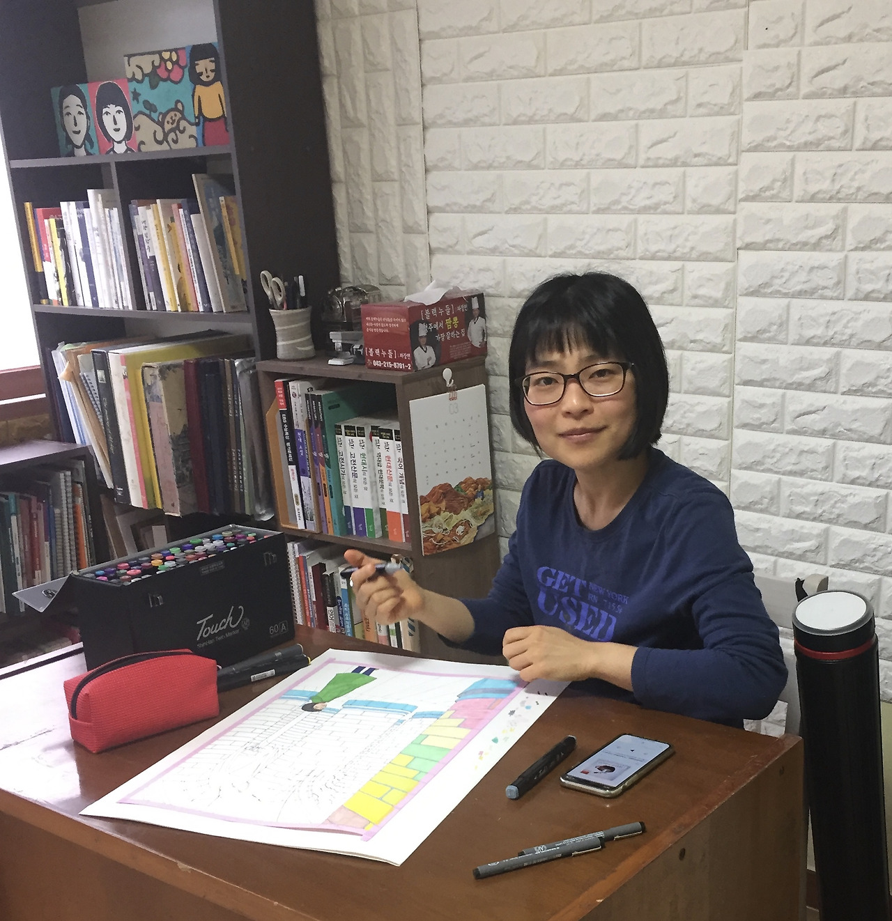 - 커버 그림은 박현경 作 ‘인생’. 아래 사진 속 제가 그리고 있던 바로 그 그림입니다.