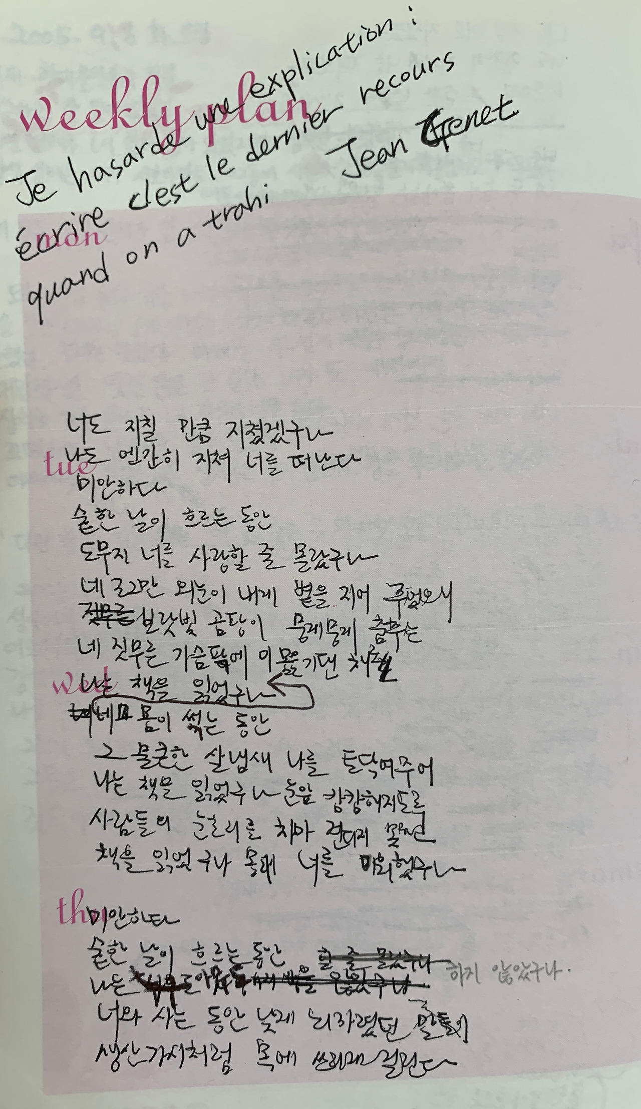 * 혹시나 하고 대학교 때 일기장을 뒤져 봤더니 이 시를 썼던 초고가 남아 있었다. 그 일기장 사진을 함께 올린다.