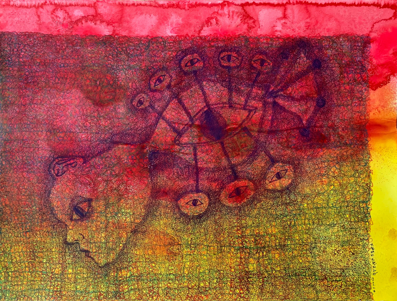 ‘네가 보고 싶어서’, 너무 보고 싶어서 몸통에 커다란 눈이 돋았다. 그 커다란 눈에서는 뿔처럼 눈물방울들이 뻗어 나오고, 눈물방울마다에 또 눈이 돋아나 너를 찾아 헤맨다. 얼굴을 보면 울어서 부은 듯한 눈에, 기이하면서도 화가 난 것 같은 표정. 무슨 소리인가 어서 빨리 듣고 싶은 소리가 있는지, 귀는 정수리에 솟아 있다. 어딘가 깊은 곳을 향해 급히 달려가고 있는 모양.
