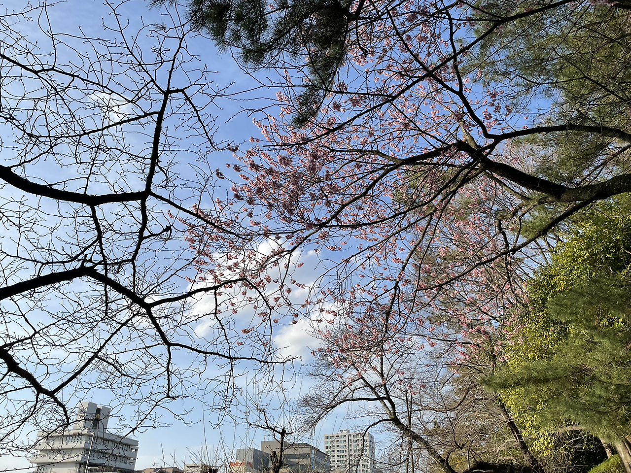 어제 이곳에 도착하자마자 눈여겨봐 둔 장소가 하나 있다. 거기로 가서 오늘은 며칠 못 부른 노래를 실컷 불러야겠다고 생각했다. 찜해둔 장소는 마쓰야마성 주변으로 예쁜 호수가 흐르고 있었는데 그 호수옆 커다란 벚나무 아래의 벤치다. 꽃이 이미 흐드러지게 피어있고 바람에 꽃잎이 눈 내리듯 떨어지고 있는 장소. 그곳에서 연주하며 노래 부르고 싶어 어젯밤부터 얼마나 안달이 났던지.