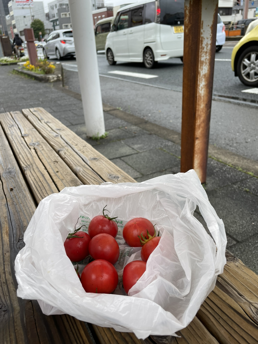 다음은 이 날이 금요일이었기 때문에 금요시장을 찾아가기로 했다. 고치시는 특이하게도 요일마다 시장이 특정한 장소에서 지속적으로 열린다. 월요일은 월요시장이 열리고 화요일은 화요 시장이 열리는 식으로 시내 곳곳에서 겹치지 않게 장이 선다. 어제 목요시장을 우연히 지나치다 토마토를 사 먹었는데 얼마나 맛있었던지 그런 토마토가 있으면 또 사 먹고 싶어졌다. 구글 지도를 켜서 자전거를 타고 이리저리 골목을 돌다 보니 금요 시장이 보인다. 시장의 규모는 매우 작았다. 거의 먹거리 위주고 상인이 열명도 채 되지 않았다. 고치역에서 그다지 많이 떨어지지 않은 곳에 있었다.