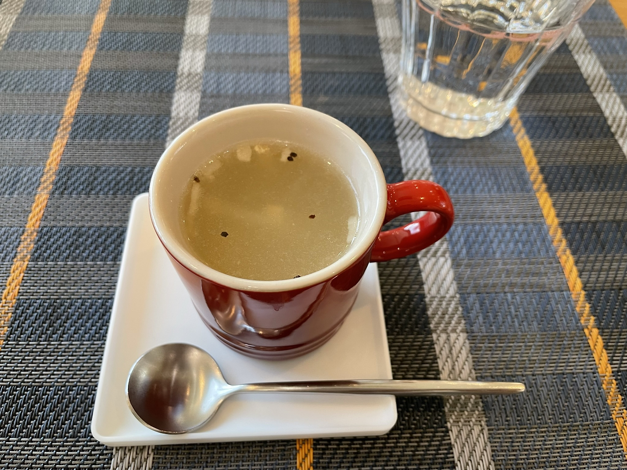 기다리는 동안 예술 조각품 같은 것들도 있고 액자도 붙어 있길래 한 바퀴 돌며 이것저것 구경하고 돌아오자 직원이 수프라면서 놓고 가는데 참 앙증맞다. 한 입에 홀짝 마시면 끝나게 생겼네. 뜨거워서 그렇게는 못했지만. 스케일 즉 그릇이 작은 만큼 먹는 양상도 거기에 맞춰지는 듯하다. 꿀꺽 꿀꺽이 아닌 홀짝홀짝거리고 있으니 잠시 뒤 본 메뉴가 나온다. 간소하면서 정갈한 상차림. 기분이 좋아 사진을 찍었다. 한 입 먹는데 맛도 순하고 좋다. 오! 오늘 성공이다!