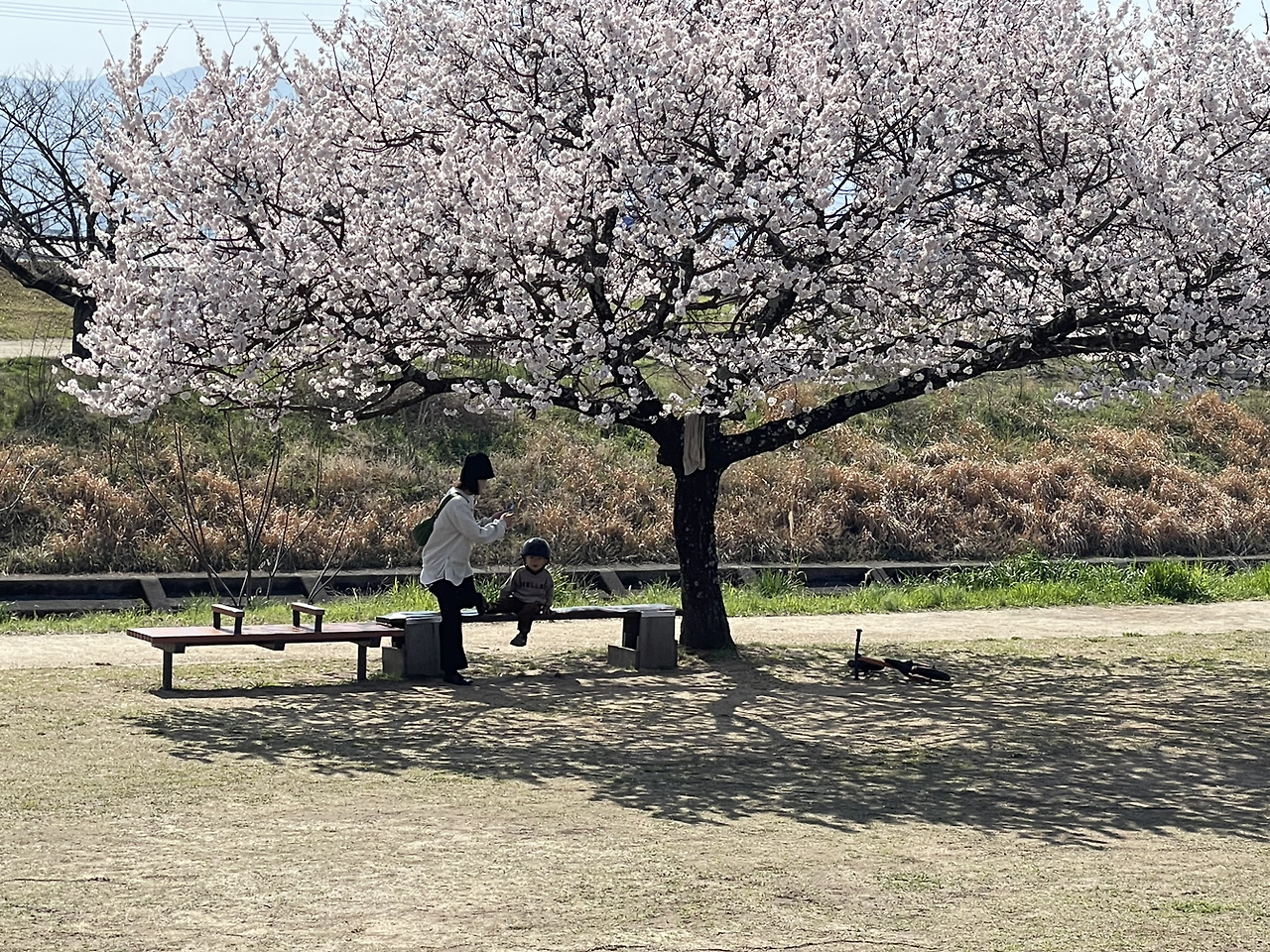 한 팀 한 팀 유심히 바라봤다. 부부가 둘 다 위아래 검은 옷을 입고 남자아이 한 명을 데리고 온 부부가 벚나무 바로 아래에 자리를 잡고 앉는다. 그 집 아들이 악기에 관심이 있는지 내 곁으로 와서 유심히 바라보며 미소 짓는다. 그 아빠가 가까이 와서 우쿨렐레 라며 하와이 음악의 악기라고 알려주는 듯하다. 나는 음악과 악기에 관심을 가지는 그 남자아이가 한없이 사랑스럽게 느껴져 미소 지으며 아이와 아빠를 바라봤다.