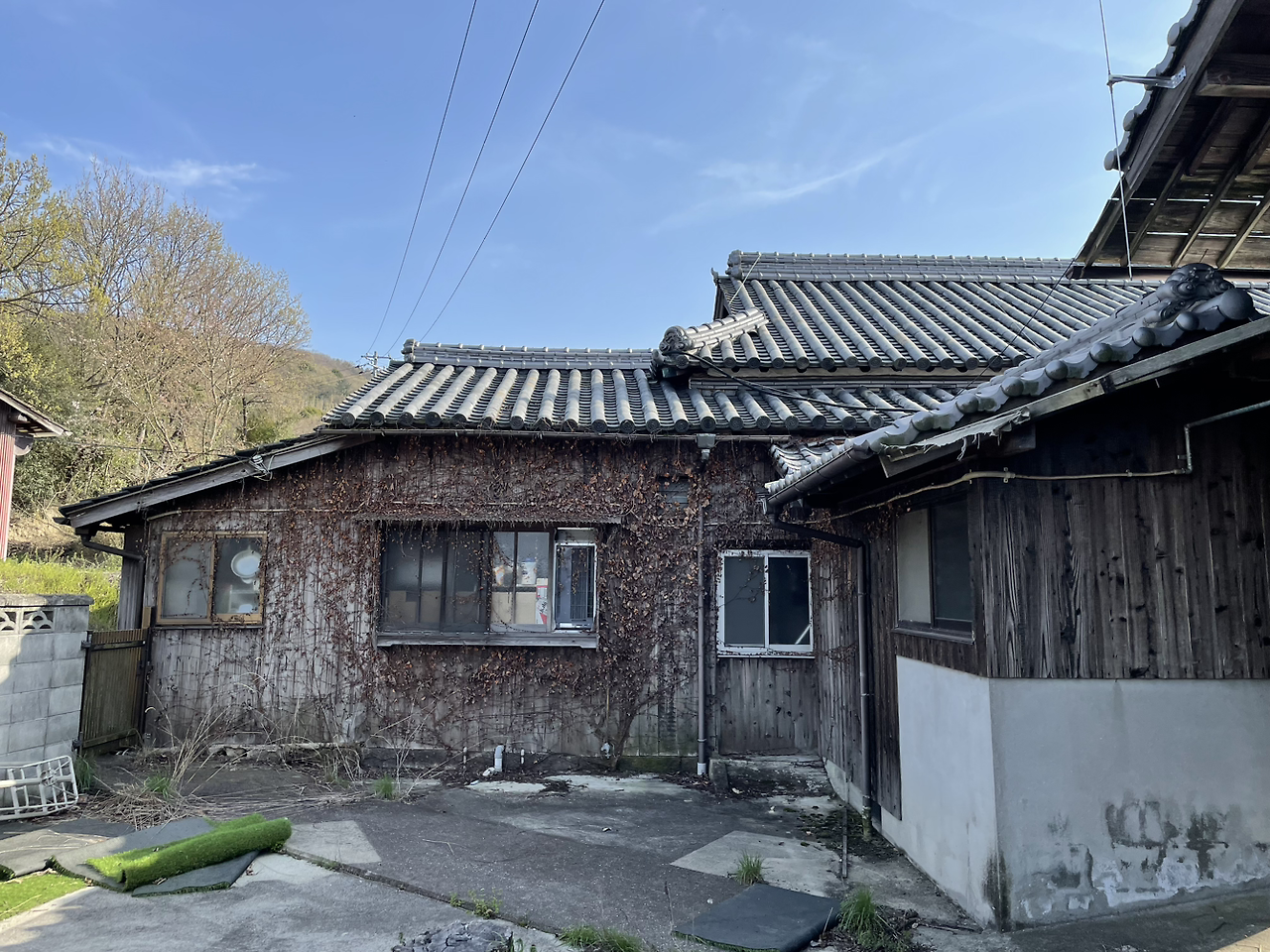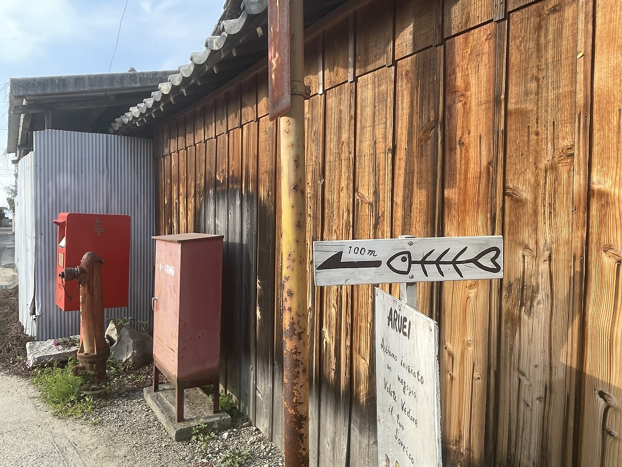 그리고는 마을을 향해서 걸어가기 시작했다. 처음에 아무것도 없는 조그만 항구에 내렸을 때의 막막함보다는 마을로 깊이 들어가 이 집 저 집 유심히 관찰하며 걸을 땐 만족감이 올라왔다. 어떤 집의 담벼락은 나무의 색이 정말 예술이었다. 어떤 집은 담의 재료가 독특했다. 담 들 만 구경해도 재밌을 지경이었다. 가는 곳마다 우쿨렐레를 세워두고 사진을 찍었다. 내 악기의 인생샷들이 이번 시코쿠 여행하며 많이 나올 듯하다.