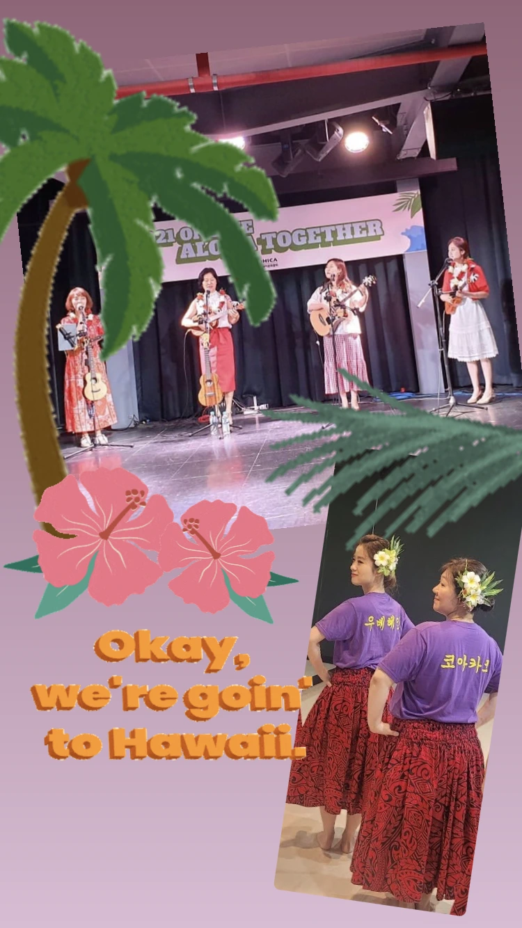 일주일에 한 번씩 하와이 노래를 배우러 다니기 시작한 지 몇 년쯤 흘렀을 때이다. 처음 배우기 시작한 지 몇 달 지나서 나는 어학연수한다고 외국으로 일 년간 나가 있었다 그리고 한국으로 돌아와서도 상수 작업실과 강원도를 오가는 힘든 상황으로 몇 년간의 공백이 있었다. 2019년 서울에 완전히 정착을 하고 난 뒤 본격적으로 하와이 음악을 시작했다. 그 해에 하와이 문화협회에 하와이 음악 공연팀반이 만들어졌다는 사실을 우연히 알았다. 망설임 없이 곧장 등록을 했다.