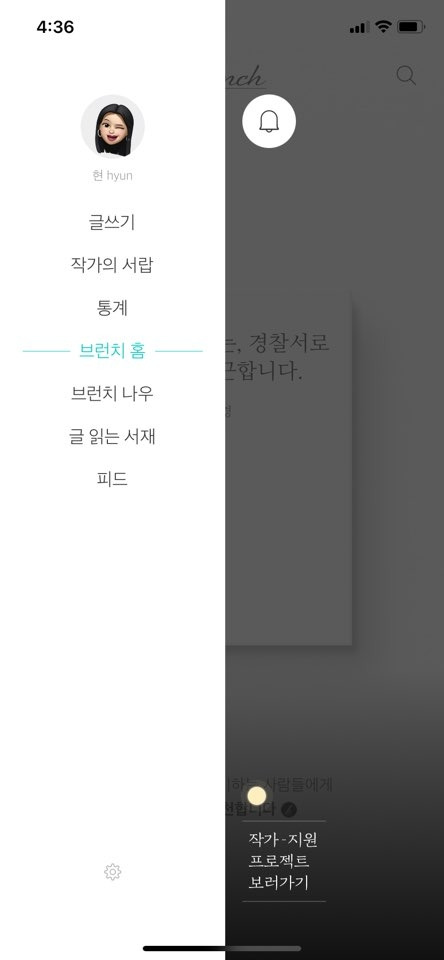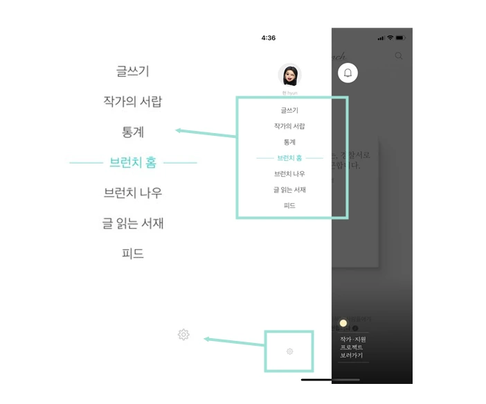 '작가의 서랍'이나 '글 읽는 서재'는 각각 임시저장글, 그리고 최근에 본 글과 좋아요 한 글을 볼 수 있는 기능이다. 직관적인 표현을 버리고 감성에 비중을 두어 본질을 흐린 UI라고 생각한다.