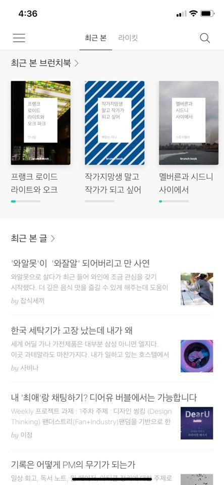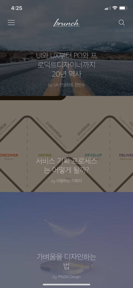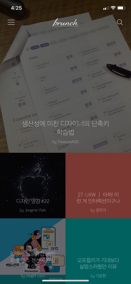 브런치의 가장 큰 장점이자 특징은 바로 심플하고 트렌디한 디자인이라고 생각한다.