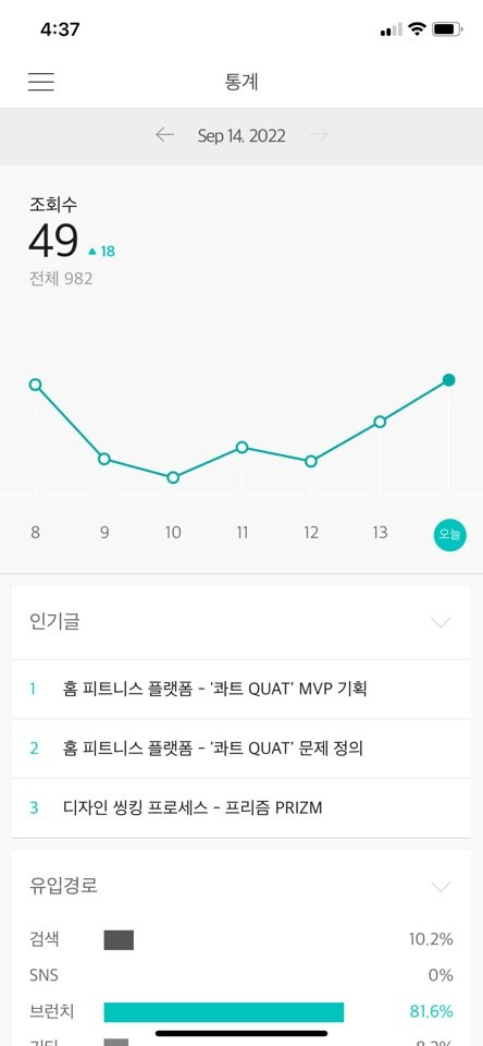 긍정적으로 느꼈던 브런치의 또다른 UX는 UI의 통일감이다.