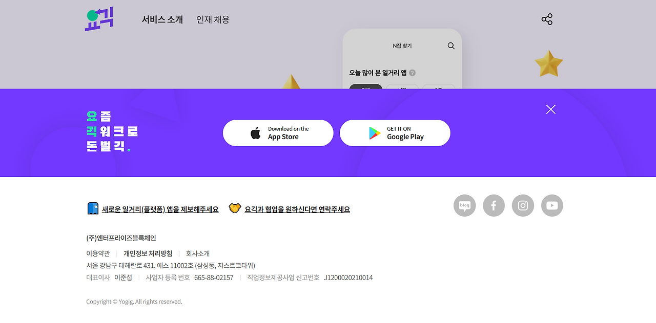 요긱 랜딩 페이지 헤더 부분에는 엔터프라이즈블록체인의 채용 지원 링크가 존재한다. 지난 글에서 랜딩 페이지 분석을 진행했을 때에는 해당 문제가 그다지 중요하지 않다고 생각했다. (왜 형이 여기서 나와...? 그 정도.) 그렇지만 오늘 PM님, 그리고 여러 동기 분들과 이야기를 나누면서 해당 문제가 매우 큰 문제라는 것을 알게 되었다.