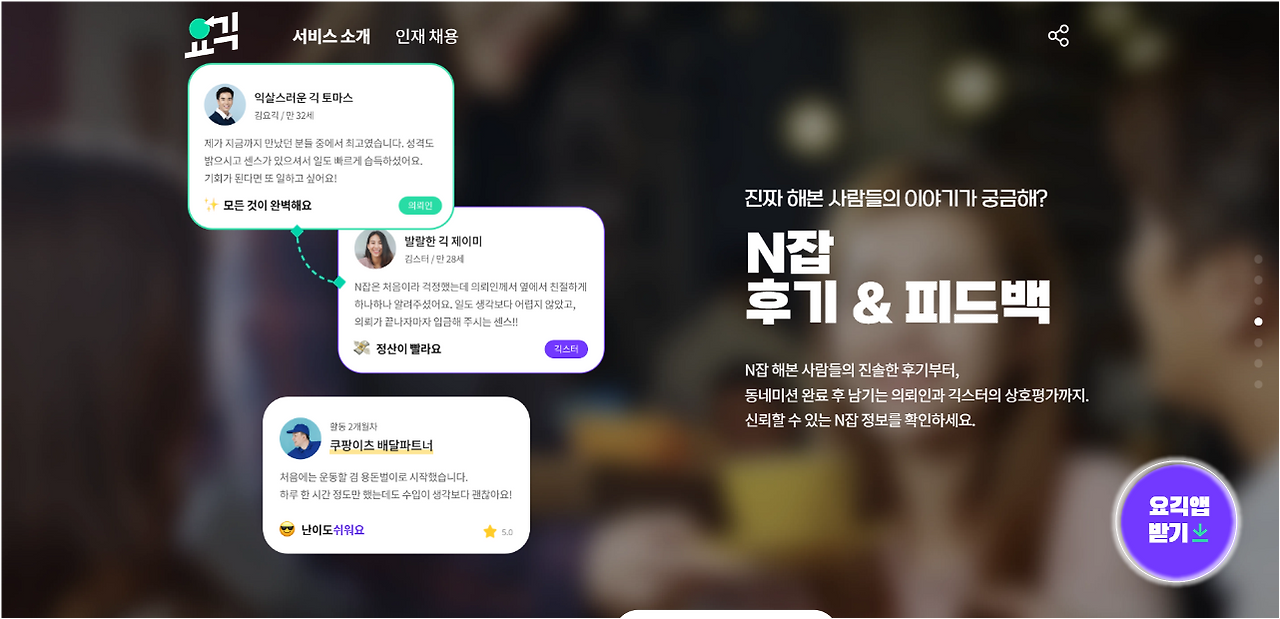눈에 띄지 않는 CTA 버튼을 강조하는 방향은 사실 상 가장 간단하고 명확한 개선안이라고 볼 수 있다. 물론 작업이 간단하고 비용이 적게 든다고 해서 무조건적으로 CTA 버튼부터 개선하는 건 지양해야 한다. 그러나 요긱의 랜딩 페이지에 대해 3명의 동기 분들과 토론한 결과 만장일치로 CTA 버튼 개선이 시급하다는 의견이 나왔다.