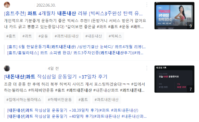 강사들이 직접 프로그램 오픈 때 콰트를 태그하기도 하고, 고객들이 운동 완료 인증 게시물을 올리면서 태그하기도 한다.