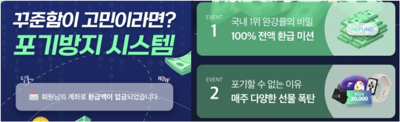 출석 미션을 성공하고 목표를 달성하면 구독료를 환급해 주는 이벤트를 진행했고, 이는 기존 고객의 유지를 위해 진행한 것이라고 볼 수 있다.