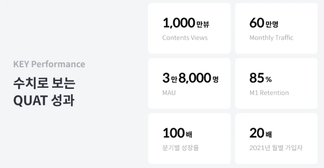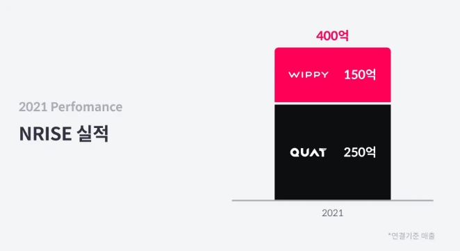 엔라이즈가 발표한 2021년도 실적을 보면 총 매출 400억 중 콰트가 250억으로, 총 매출의 60% 이상을 내고 있다. 또한 오픈 1년만에 60배 매출 성장의 J커브를 그렸다 발표한 것을 보면, 고객의 구매가 지속적으로 이어지고 있음을 알 수 있다.
