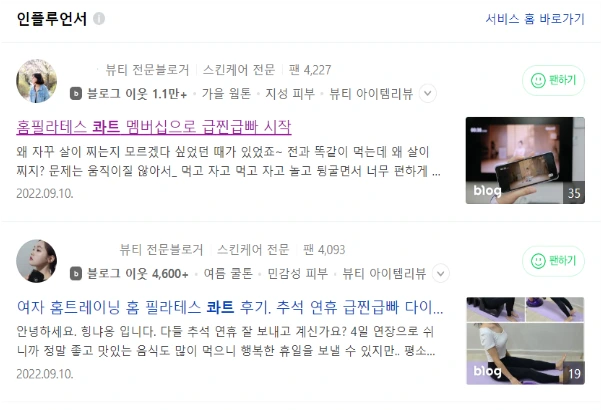 먼저 네이버에 '콰트'를 검색했을 때, 공식 홈페이지와 파워링크를 제외하고 최상단에 인플루언서, 즉 파워블로거들의 리뷰가 보인다. 콰트 측에서 협찬을 주어 진행한 광고도 있고, 일명 '내돈내산'으로 쓰여진 솔직한 후기도 볼 수 있다.