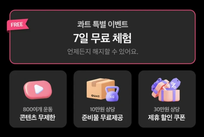콰트는 신규 고객이 정기로 구독을 시작하기 전에 7일간 무료로 체험할 수 있는 기회를 준다. 무료로 이용하는 기간에도 콰트의 모든 기능을 이용할 수 있다.