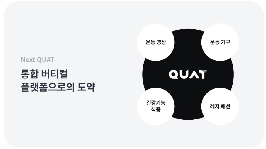 콰트는 운동 관련 정보를 한 곳에 모으고, 전문성 있는 양질의 콘텐츠를 제공하기 위해 제작되었다. 그러나 단순히 운동 콘텐츠를 제공하는 프로덕트가 아니라, 입는 것부터 먹는 것까지 전부 다루는 통합 버티컬 운동 플랫폼으로 도약하겠다는 비전을 가지고 있다. 이 비전은 전 세계 홈 피트니스 서비스(앱) 시장 규모가 계속해서 커질 것이라는 전망을 근거로 세워진 것으로 생각할 수 있다.