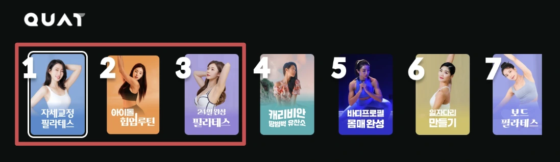 저번 글에서 콰트의 첫 번째 Growth Point로 필라테스 프로그램을 언급했었다. 그만큼 콰트는 대표 홈필라테스 플랫폼이라고 할 수 있는데, 아래 사진을 보면 콰트의 인기 프로그램 상위 3개가 모두 필라테스 프로그램인 것을 볼 수 있다.