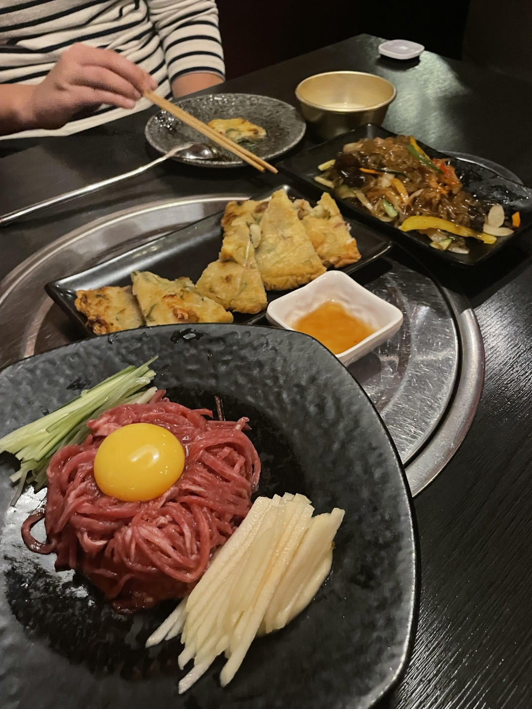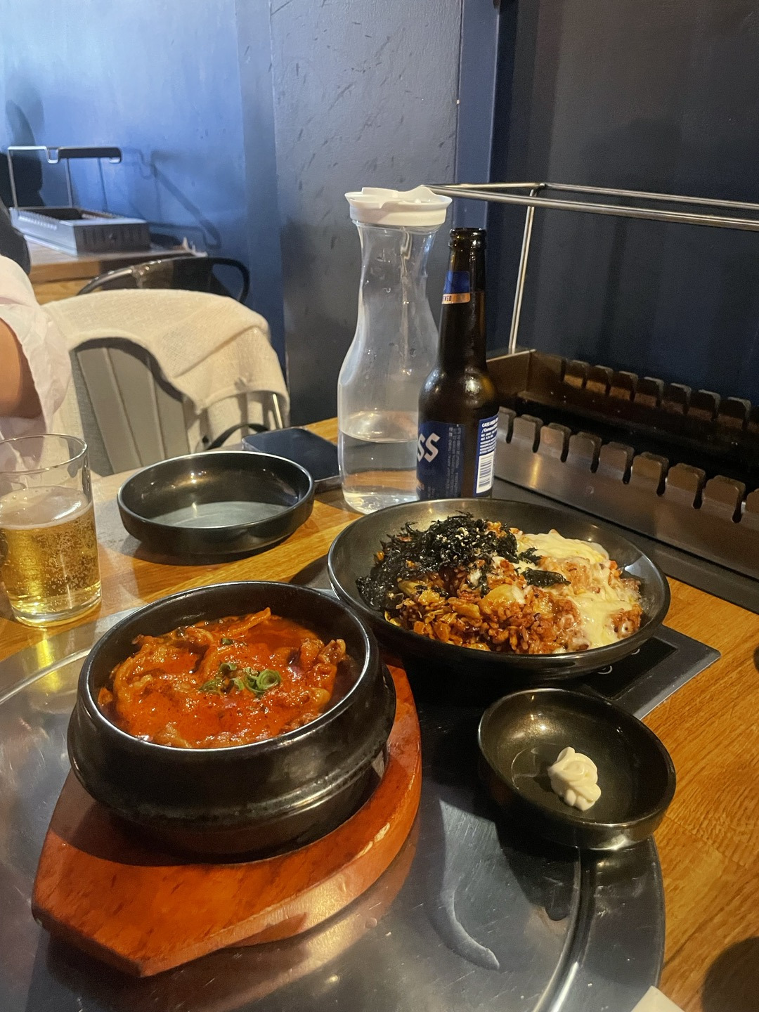 주메뉴는 Korean BBQ이고, 그 외에 찌개류와 사이드도 판매한다. Gogi BBQ의 특별한 점은 금액을 추가하면 콘치즈와 계란찜 토핑을 판에 둘러주신다는 것이다. 유럽 친구들을 데리고 갔었는데 너무 신기해 해서 뿌듯했다. 사이드로 육회, 전, 잡채를 종종 시키는데 익숙한 한국 맛이다 :)