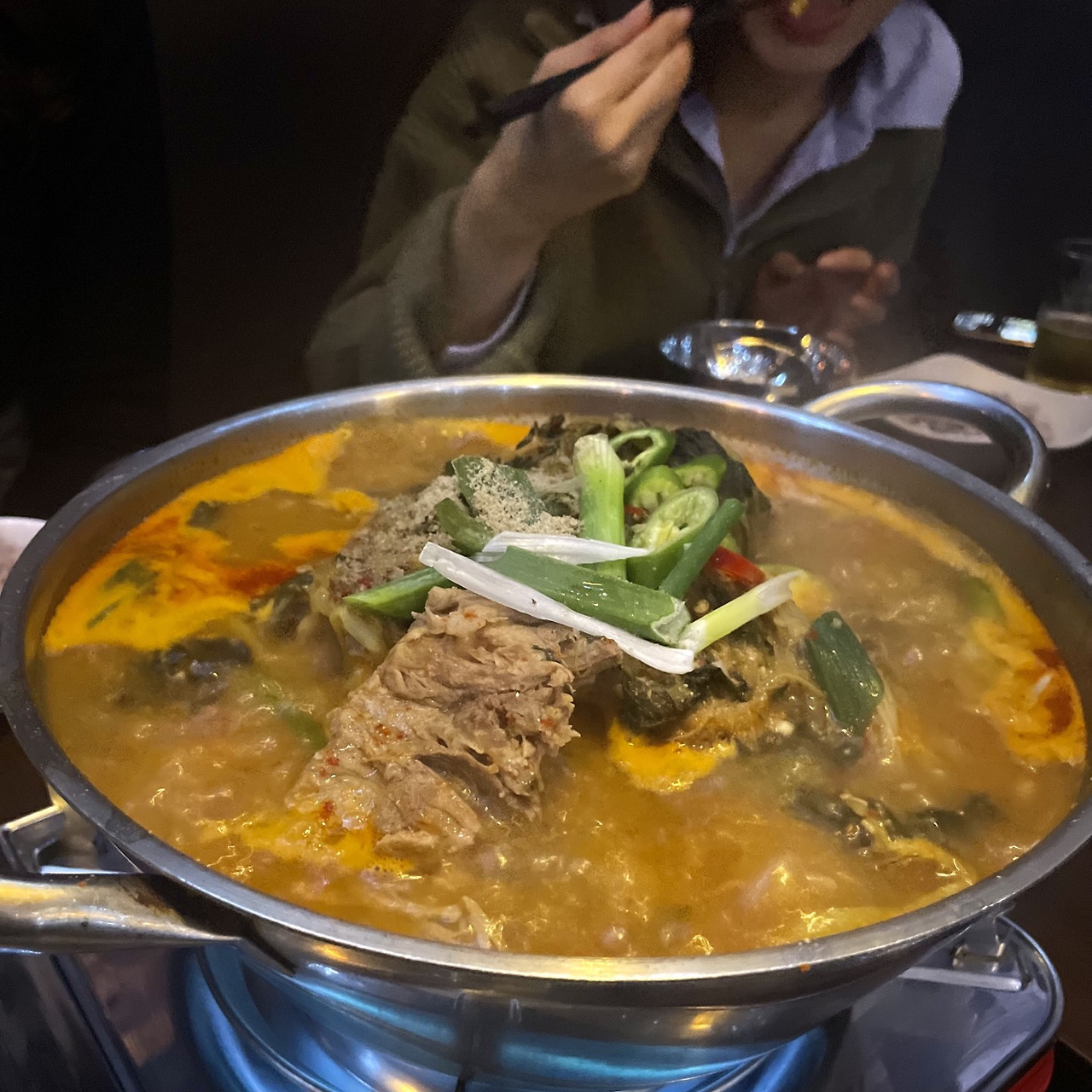 여기도 홍대포차처럼 안주 위주의 메뉴가 많지만 나와 내 친구들의 최애 메뉴는 감자탕이다. 런던에서 Korean BBQ, 김치찌개, 순두부찌개를 찾기는 쉽지만 감자탕을 찾기는 너무 어렵기 때문이다. 심지어 집에서 하기도 어려운 음식이다. 한강포차 감자탕은 들깨가루와 시래기도 넣어주는 찐 감자탕이다. 감자탕을 발견한 이후로는 오직 감자탕 때문에 간다....