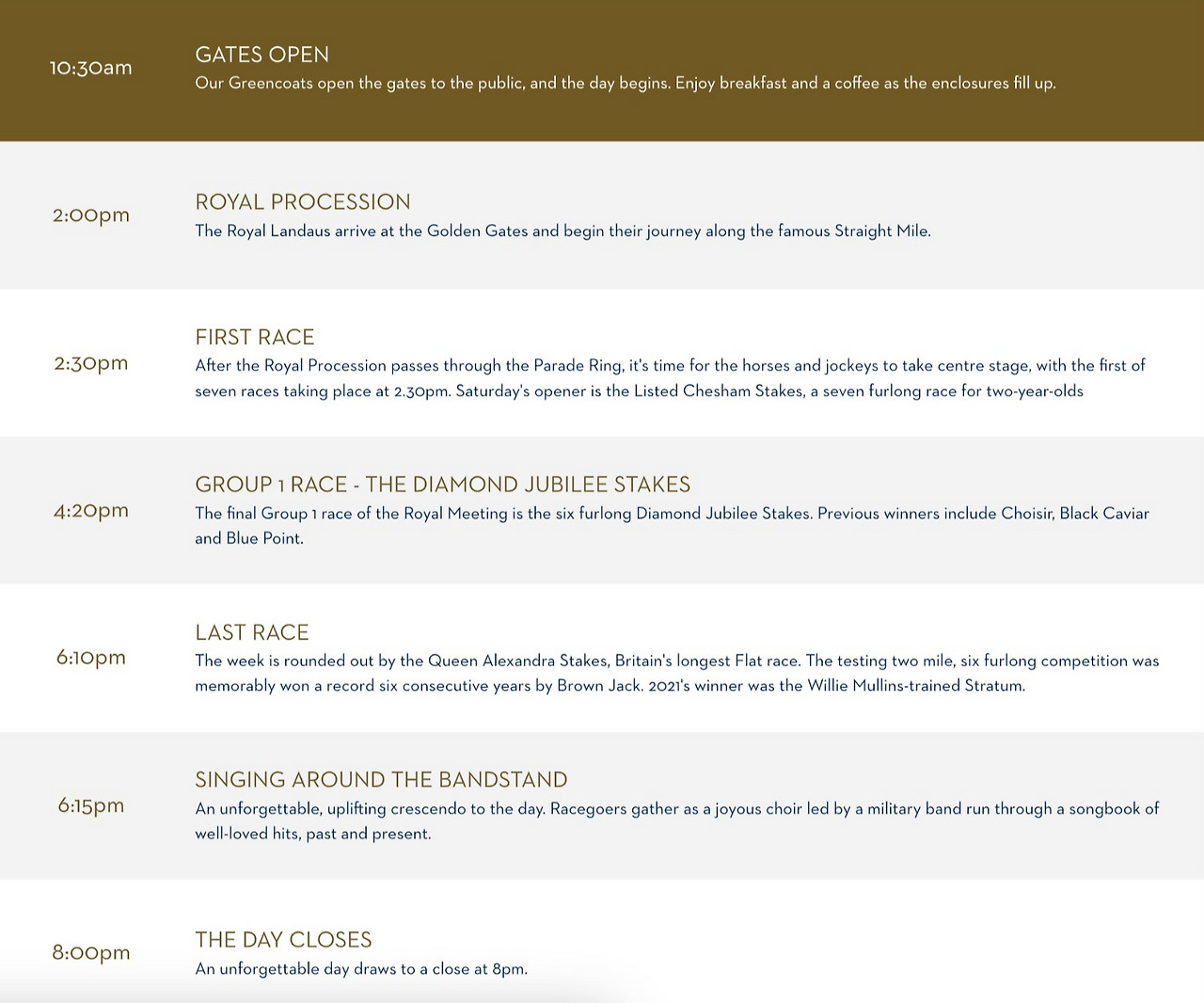 영국에 오면 꼭 해보고 싶었던 버킷 리스트 중 하나는 영국의 왕실 경마 이벤트인 Royal Ascot에 참석해보는 것이였다. MBA 1년차에는 취업준비와 공부로 정신이 없어서 갈 생각을 전혀 못했었는데, MBA 졸업을 몇 주 남긴 올해 6월에 드디어 가볼 수 있었다.