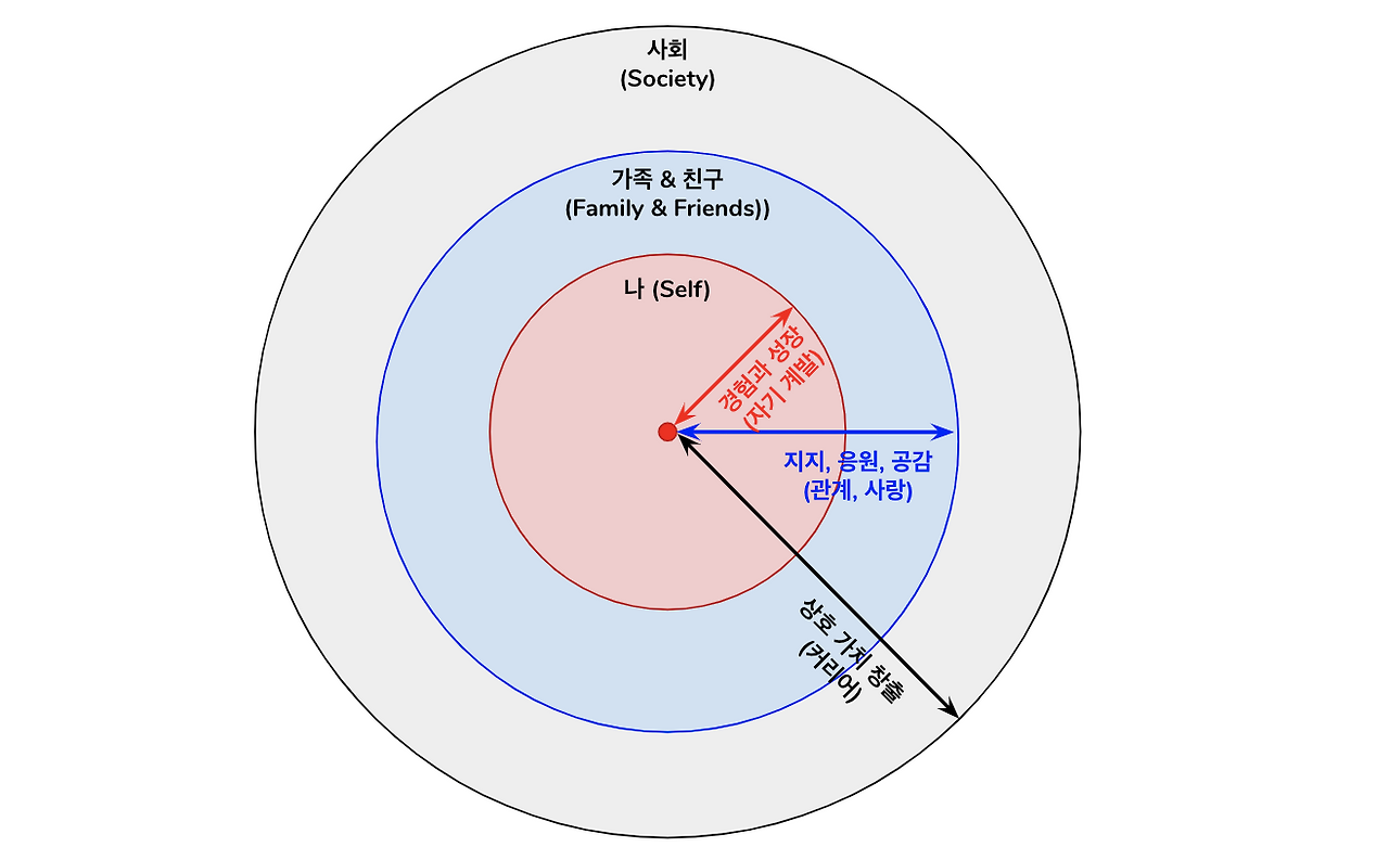 내 삶을 구성하는 3가지 요소: 나(Self), 가족/친구(Friends&Family), 사회(Society)