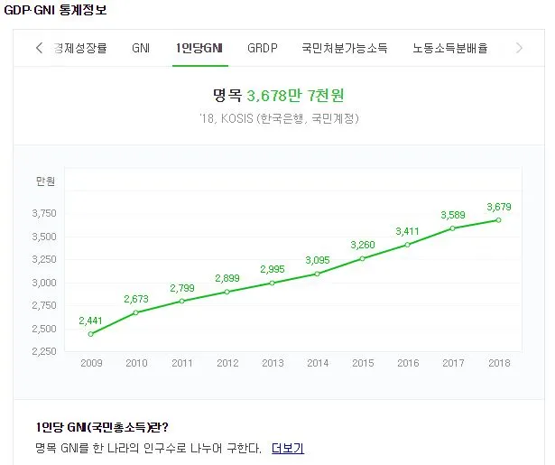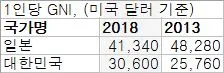우리나라 1인당 GNI(국민총소득)가 최근 3만 달러를 돌파했다고 한다.